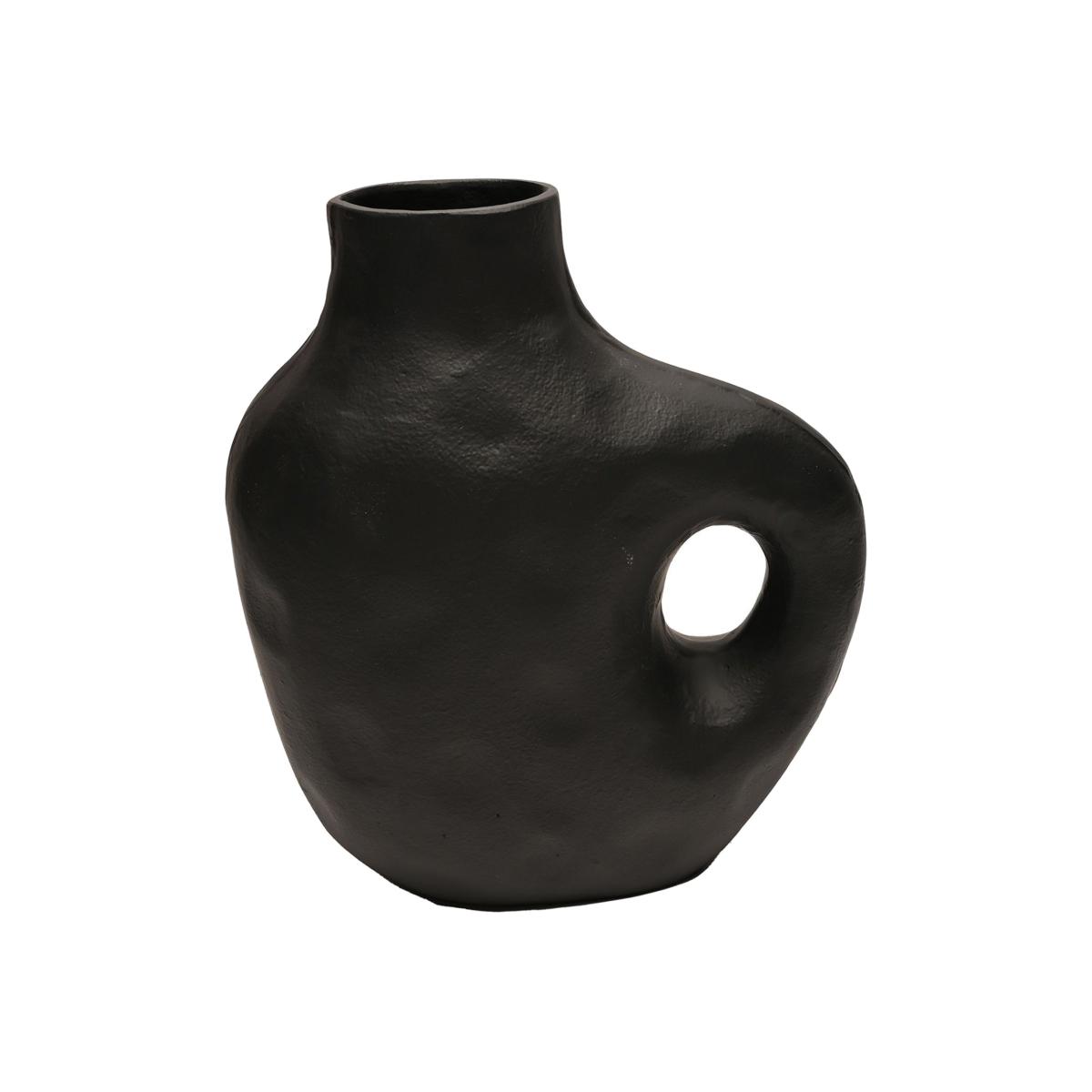 * Fun irregular shape * Modern design * Lovely gift idea Add a stylish twist to your space with the Hestia Aluminium Jug Vase. Finished in matte black, its sleek yet classic jug shape blends beautifully with both modern and traditional interiors. The narrow opening is perfect for a few simple stems or dried flowers, adding a touch of nature without overwhelming your décor. Crafted from lightweight aluminium, it’s easy to move and position wherever you fancy. Whether on a shelf, sideboard or windowsill, it’s a standout piece with timeless appeal. Understated, elegant, and full of character.