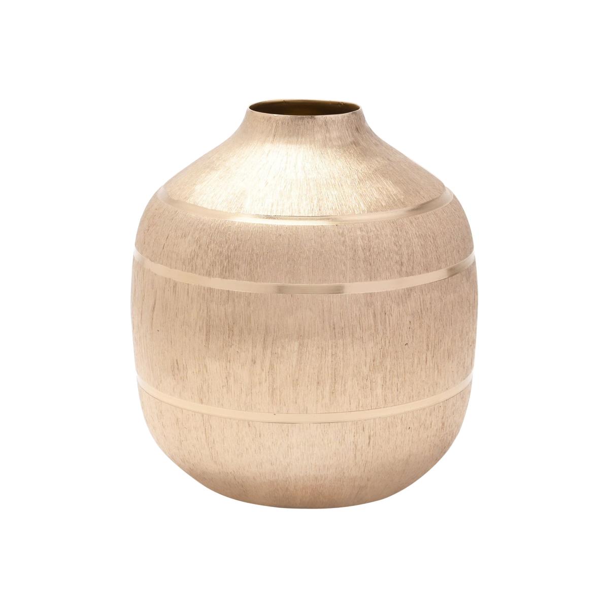* Finished in a beautiful brushed gold * Available in two sizes * Great gift idea Add a touch of subtle luxury with the Hestia Aluminium Round Gold Vase. Complete with a soft gold finish and fine etched detailing, it brings understated glamour to any room. Cast from aluminium, its lightweight yet durable. Perfect as a centrepiece or styled with a bold faux stem. This stunning rounded vase is finished with a metallic sheen that is sure to turn heads. Fresh flowers aren't recommended but its perfect for dried or artificial arrangements.