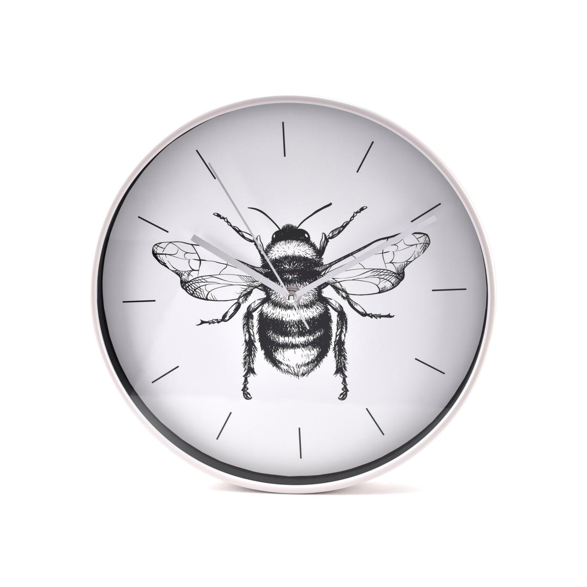 * Sleek grey frame * Black and silver accents * Compact 30cm size * Bee illustration This beautifully designed Hestia Bee Wall Clock adds a touch of nature to your home with its black and white bee illustration. The grey metal frame, black baton dial and silver hands create a contemporary look that complements any décor. At 30cm in diameter, it’s the perfect size to make a statement.