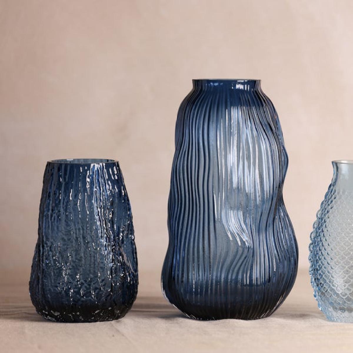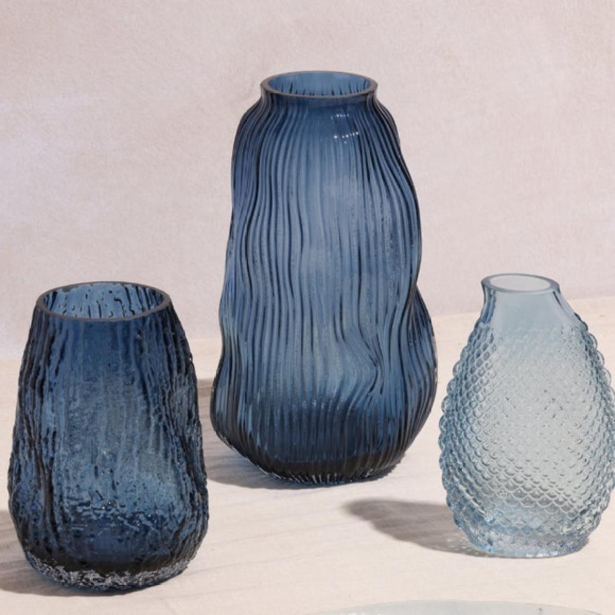 * Deep blue colour * Crinkled glass texture * Elegant shape for versatile styling Bring a splash of artistry to your home with the Hestia Blue Fluid Textured Glass Vase. Its rippled surface and rich blue tone create a tactile, eye‑catching look that feels both modern and timeless. Ideal for showcasing dried stems, bouquets or standing solo as a statement piece, it adds depth and colour to shelves, consoles or dining tables. A beautiful way to elevate any interior with texture and elegance.