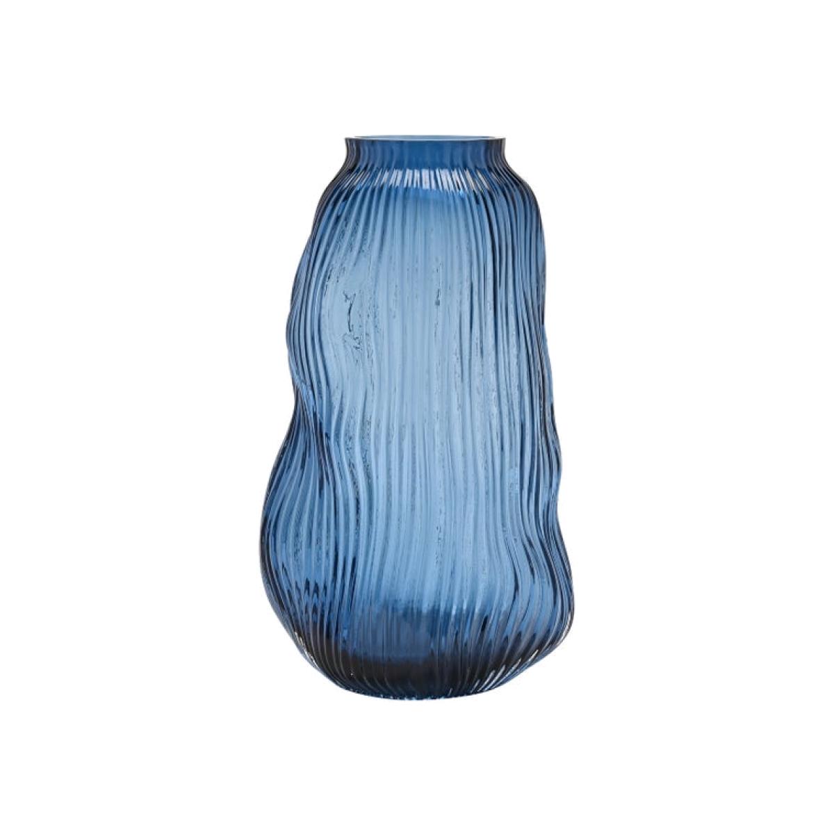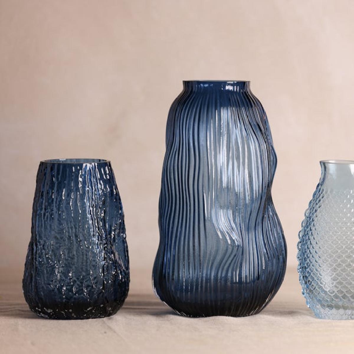 I love this blue ridged glass vase for its bold colour and textured finish, which adds visual interest without overwhelming a space. It works well in various interiors, from modern minimal schemes to more eclectic or coastal styles, providing a pop of colour and a tactile element. For styling, I recommend keeping arrangements simple-think loose wildflowers or single-stem blooms-to highlight its shape and texture. Alternatively, it can be used as a standalone decorative piece on a mantle or side table, where its rich hue can really stand out. Its shape and ridged detail make it both functional and a statement piece, adding a touch of elegance to any room.