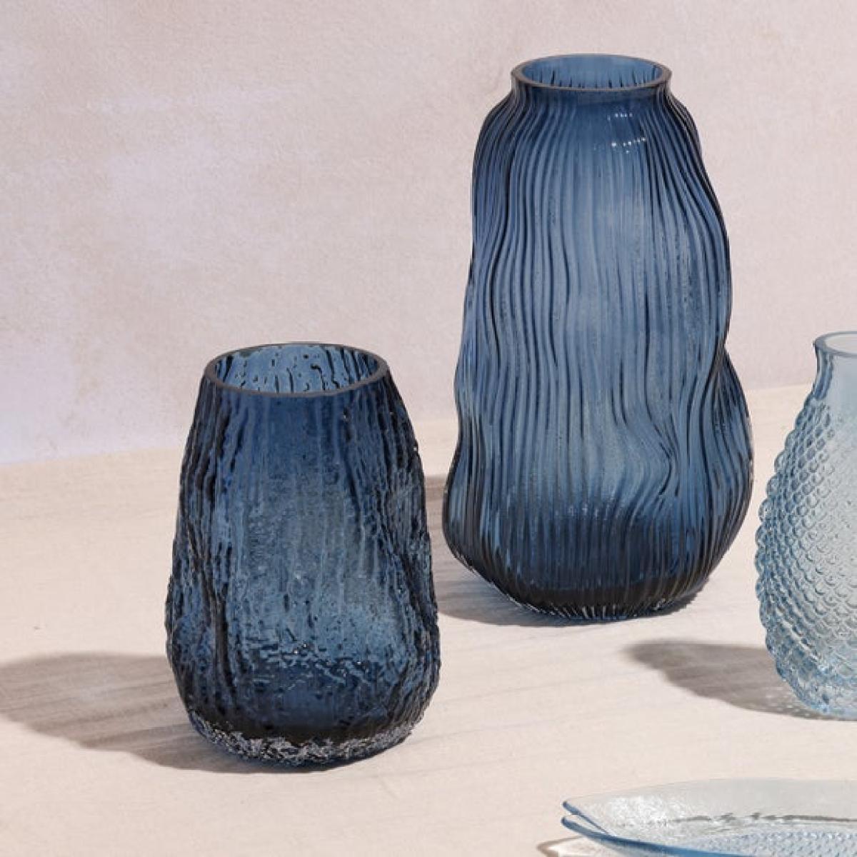 * Rich blue glass * Ribbed texture * Creates a striking focal point * Tall form for single stems or full bouquets Add depth and drama to your décor with the Hestia Blue Ridged Textured Glass Vase. Its distinctive ribbed detailing and vibrant blue finish make it a standout piece that feels both modern and timeless. Ideal for showcasing a statement stem or a lush bouquet, it brings effortless style to shelves, consoles or dining tables. A versatile accent that brings colour and texture to any space.