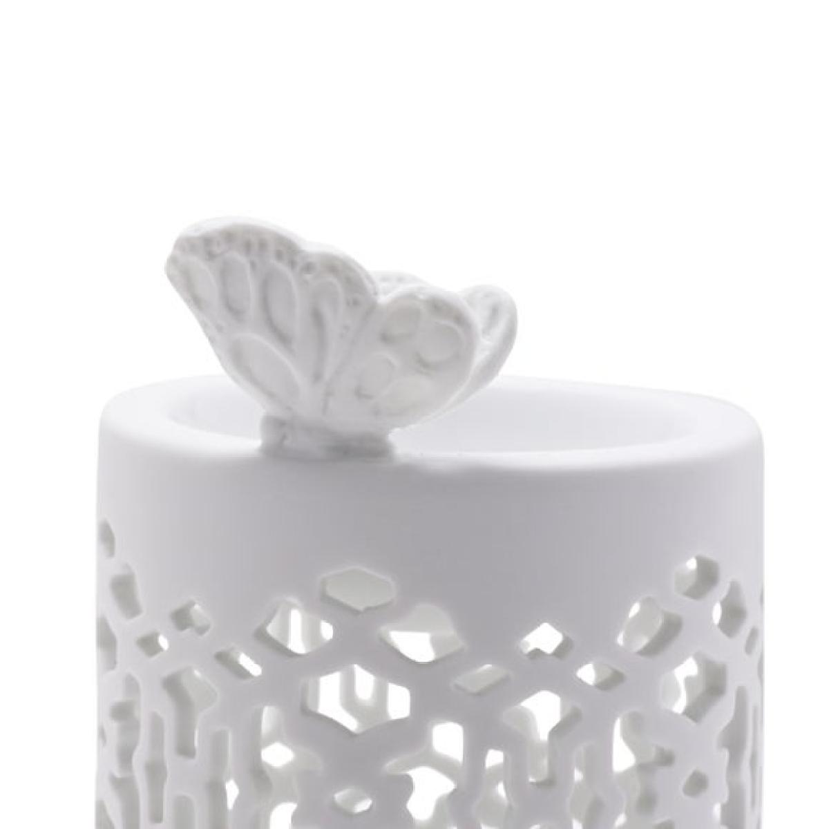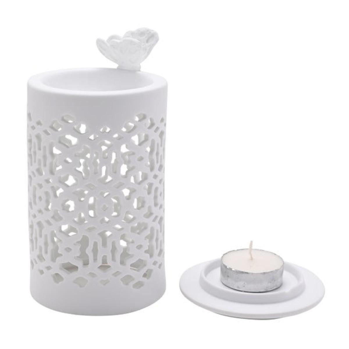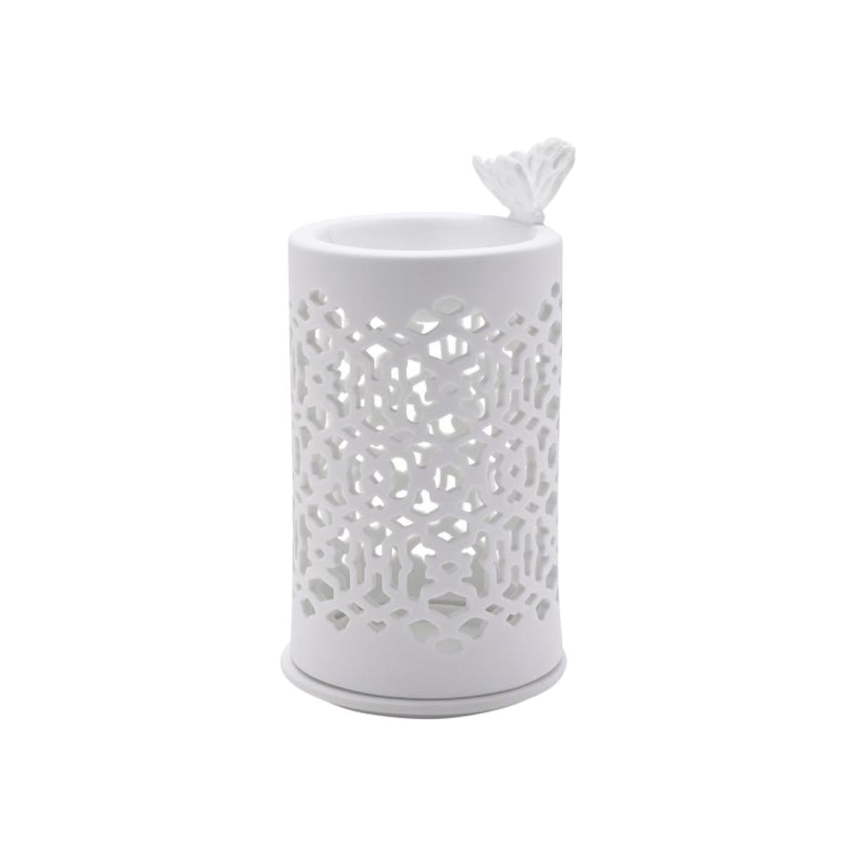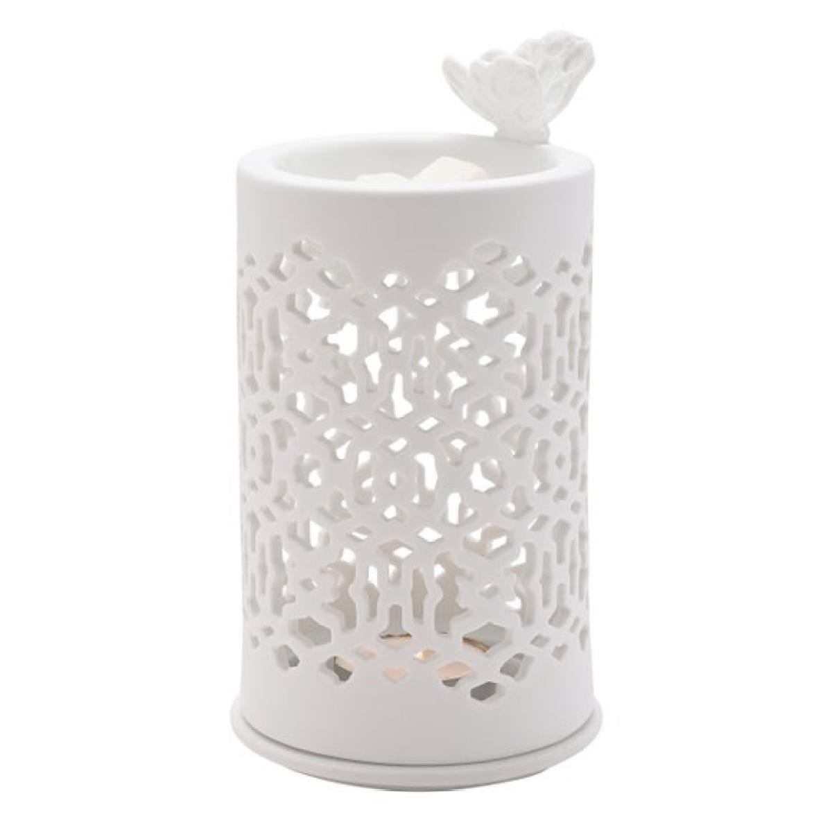 * Smooth glazed white ceramic * Delicate perforated design * Soft glow and light pattern when lit * Butterfly detail Bring elegance and tranquility to your home with the Hestia Butterfly Wax Melt Burner. Its perforated ceramic design lets the gentle glow of a tealight shine through, casting beautiful patterns while releasing your favourite scents. Finished in classic white with a butterfly accent, it suits any interior style, and is perfect for creating a cosy, fragrant atmosphere. Please note: Tealight and wax melts not included.