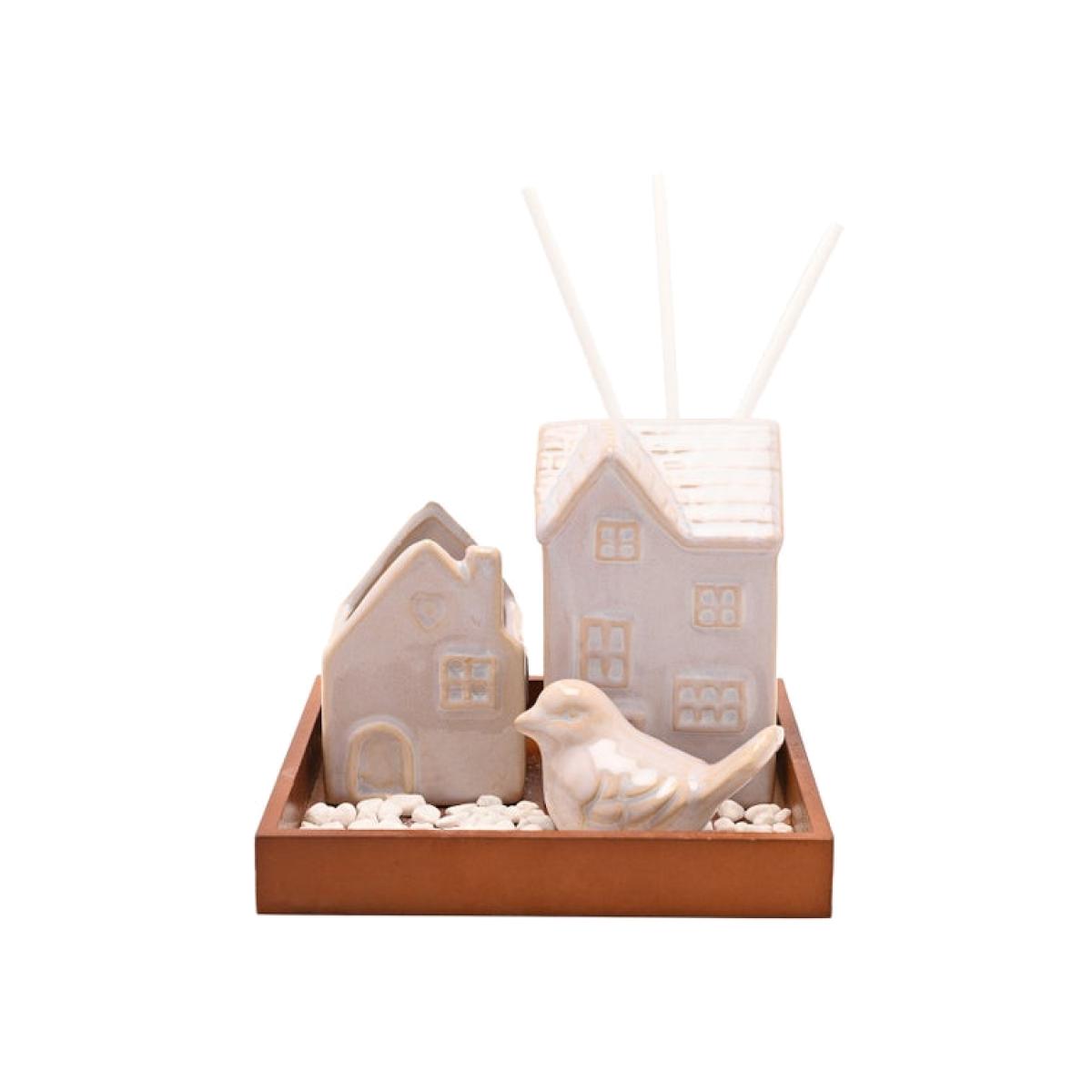Hestia Ceramic Bird & House Diffuser & Tealight Holder Set