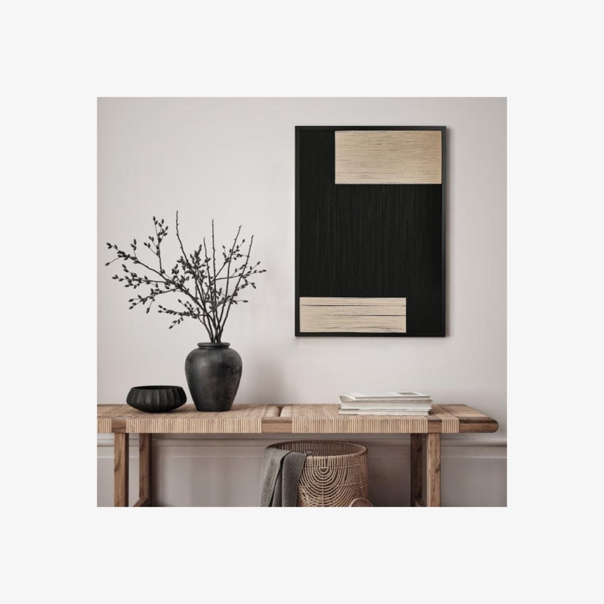 * Bold cream and black * Geometric design * Intricate thread detailing * Striking focal point Make a statement with the Hestia Cream & Black Geometric Thread Wall Art. Layers of cream and black thread form a clean, graphic pattern that brings depth and tactile interest to your walls. The rectangular shape delivers impact while staying refined, so it works just as well above a sofa as it does in a hallway. A versatile piece that adds crisp, contemporary style to any modern scheme.