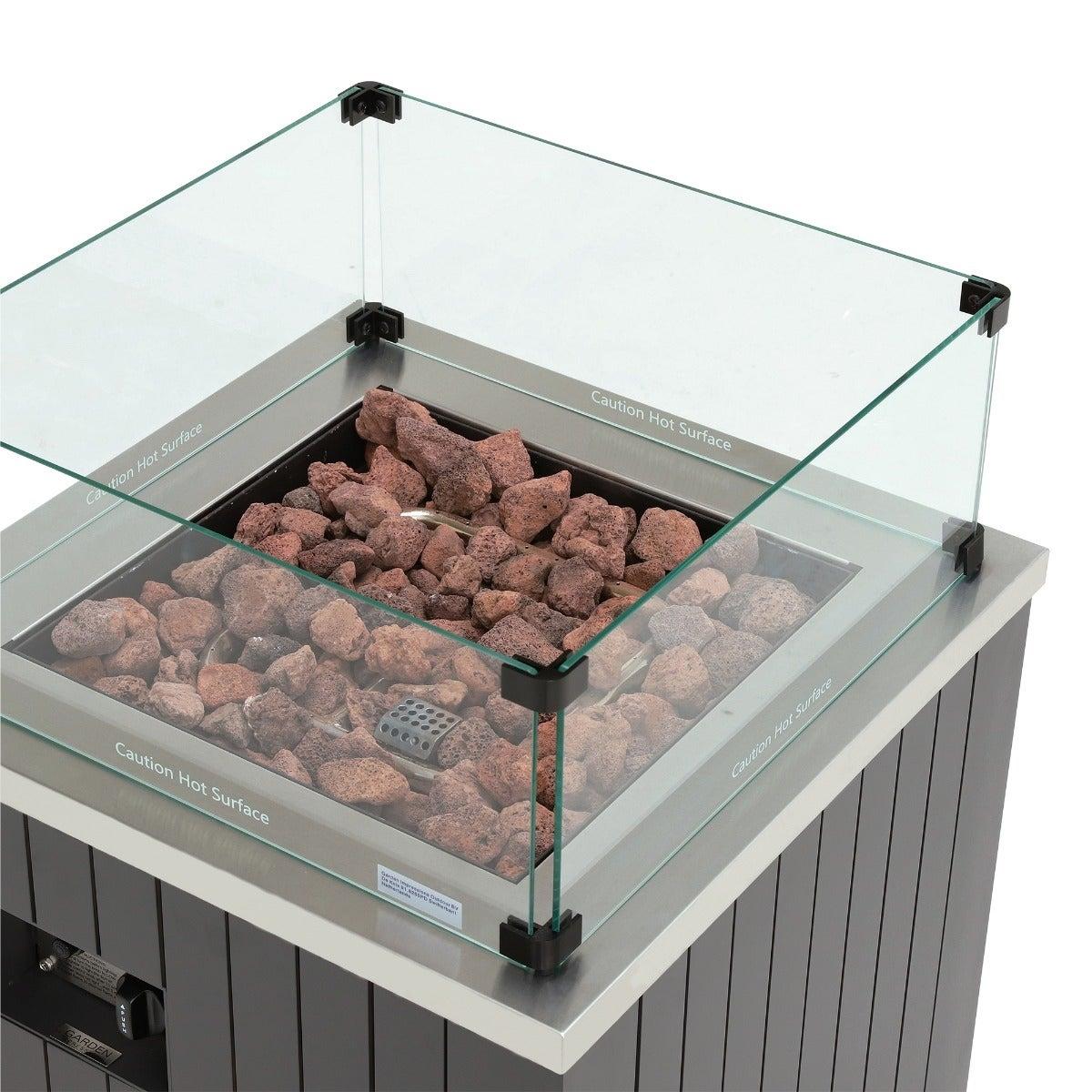 I love this fire pit for its sleek, contemporary look and versatile design. It works particularly well in modern and urban interiors, but can also add a sophisticated touch to rustic or coastal styles when paired with the right accessories. Practical styling tips include placing it amidst outdoor seating for cosy gatherings or incorporating natural materials like stone or timber around it to enhance its outdoor appeal. The built-in glass panels not only add a touch of safety but also create a striking visual focal point, making it perfect for both day and evening use. Keep the surrounding area uncluttered to maximise its clean lines and let this piece become a stylish centrepiece in your outdoor setting.