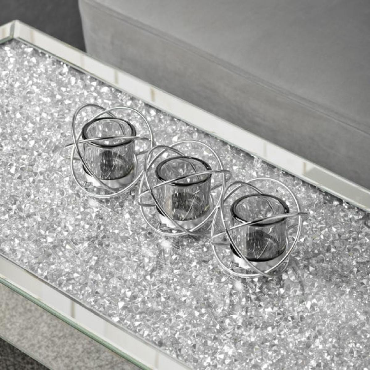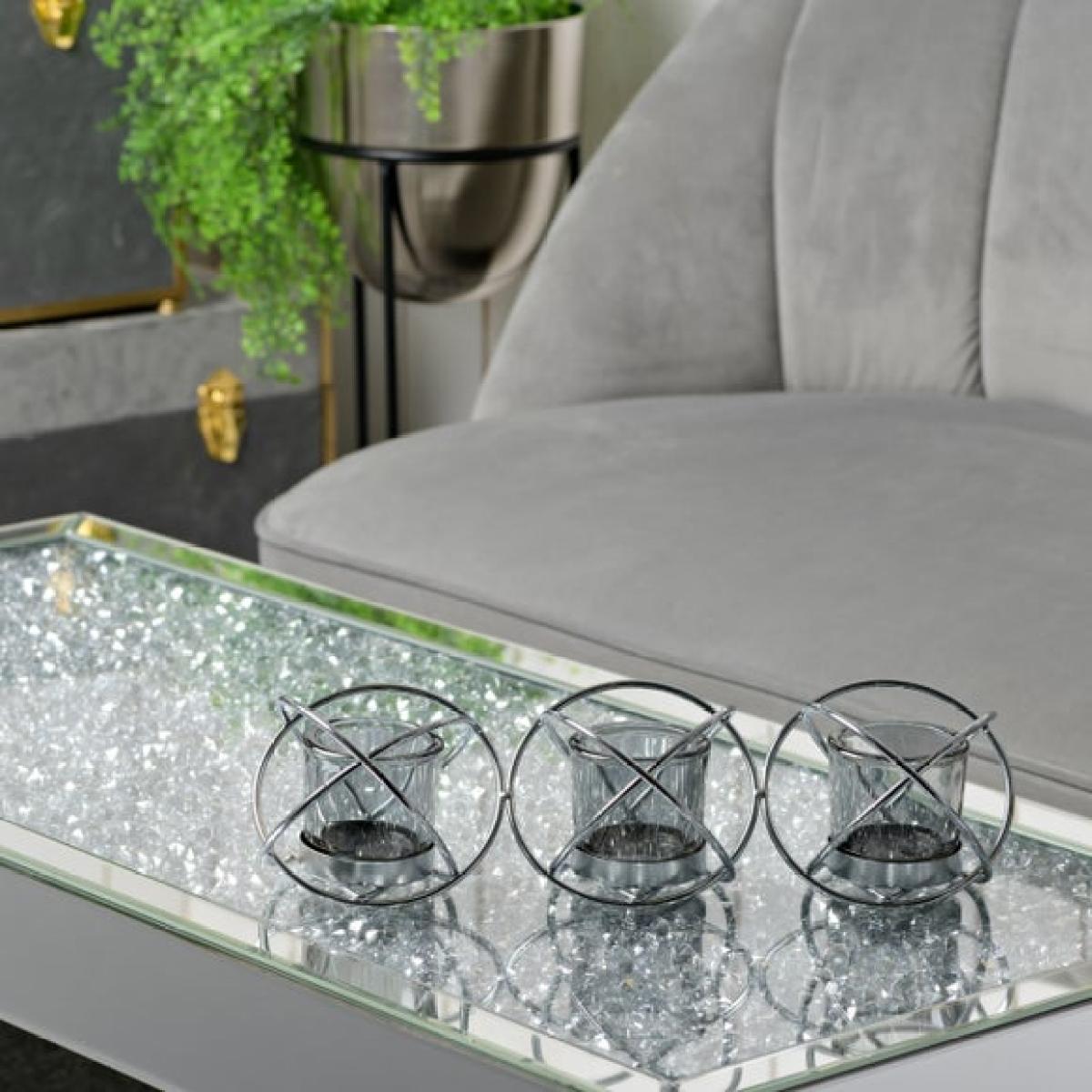 * Sleek silver finish * Perfectly suited for centrepieces * Looks beautiful lit and unlit Bring a touch of contemporary elegance to your home with the Hestia Glass Triple Smoke Tea Light Holder. With its sleek silver finish and modern circular frame, this stylish piece exudes effortless glamour. Whether adorned with flickering candles or left as a decorative statement, it offers a refined yet versatile charm. Perfectly suited for centrepieces, mantel displays, or sideboards, it adds sophistication to any setting. Its smoky glass design enhances the ambience, creating a soft, inviting glow. A striking blend of style and function, made to impress.