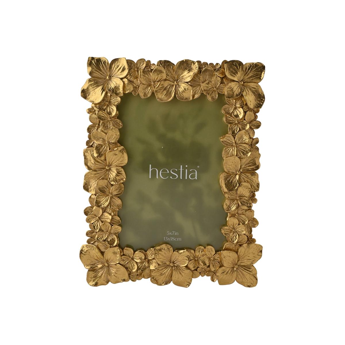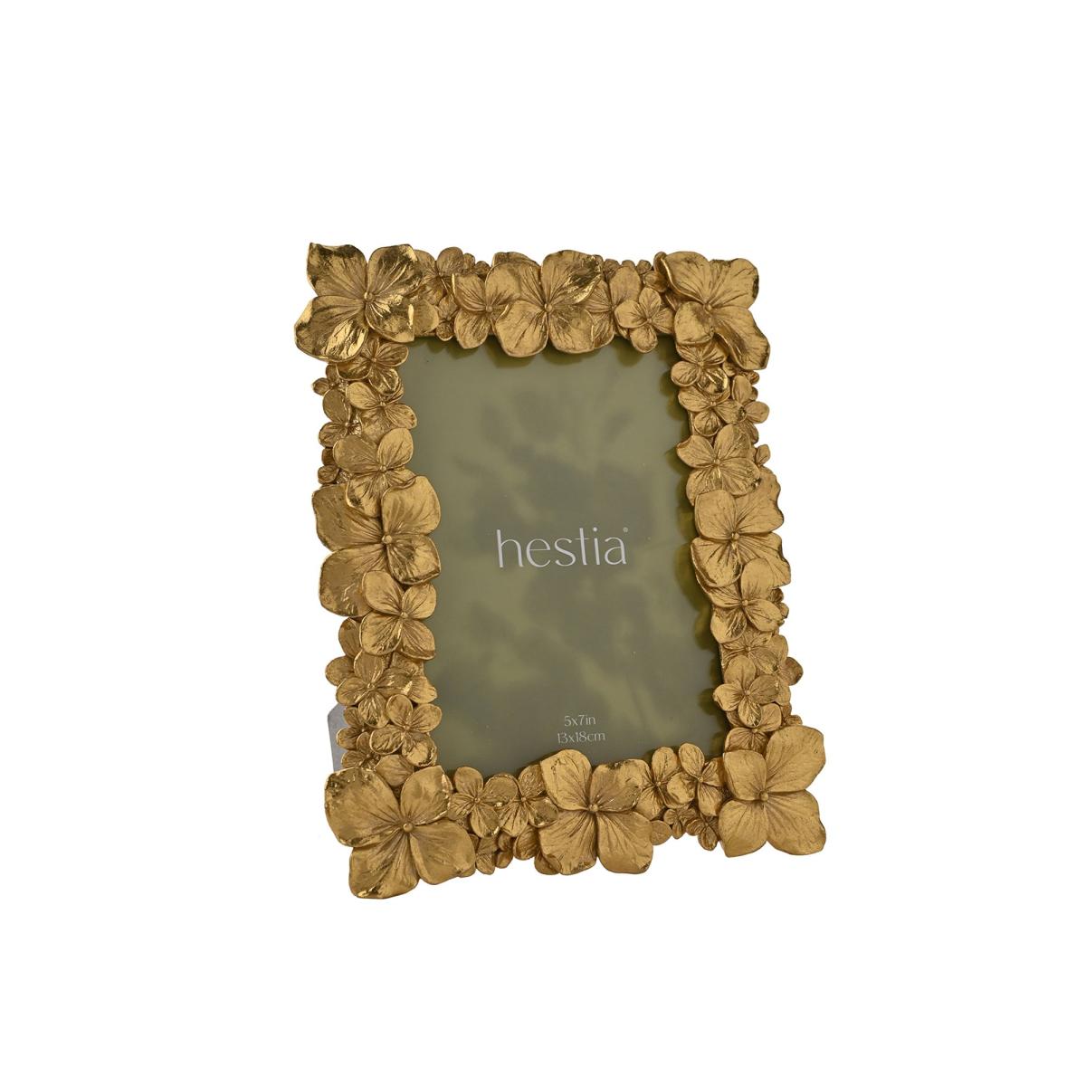 * Luxurious metallic gold finish * Intricate flower details * Modern and timeless style * Available in multiple sizes This beautifully designed Hestia Gold Flower Photo Frame features a metallic effect finish with delicate gold flower accents, bringing elegance and sophistication to any space. The stylish frame fits well with a contemporary yet timeless look. Designed for portrait or landscape orientation, it includes a sturdy stand for easy display on any surface. This photo frame is available in multiple sizes.
