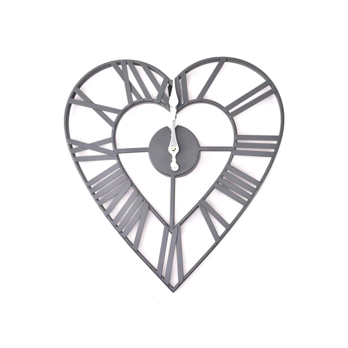 * Heart shaped * Roman numeral for a timeless look * Decorative spade hands This Hestia Grey Heart Wall Clock adds a romantic touch to any space with the heart-shaped cut-out design. The decorative spade-shaped hands and classic Roman numerals add a timeless feel, making it a beautiful blend of style and functionality. This clock is a great addition to add character in any room.