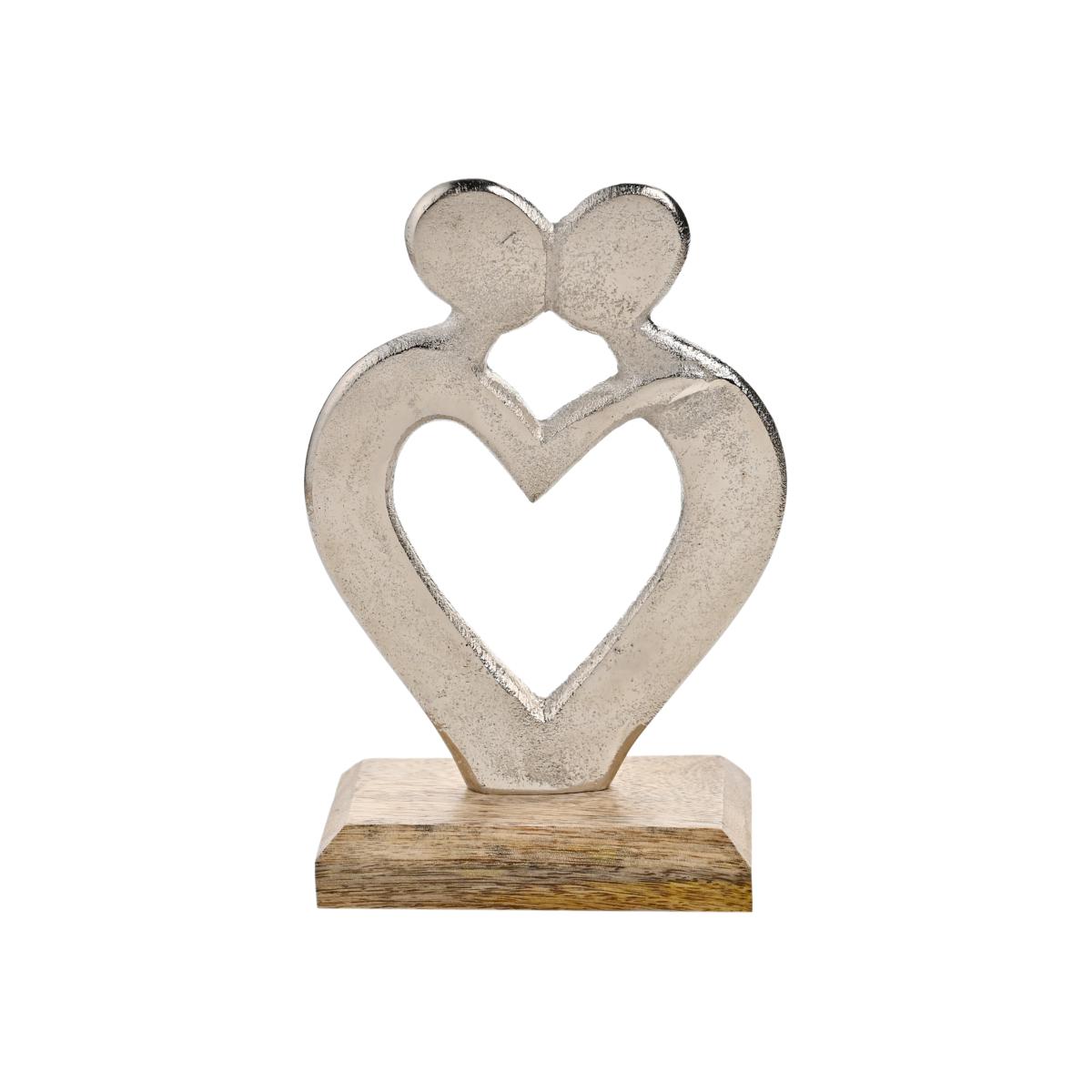* Sturdy wooden base with metallic detailing * Elegant design * Perfect adding a calming feel to any home Symbolise love and intimacy with the Hestia Silver Metal Kissing Heart. Featuring two mirrored heart halves gently meeting in the centre, this sculptural piece is mounted on a sturdy wooden base for contrast and support. A romantic and modern decorative element, it's perfect for gifting or adding warmth to your home décor.