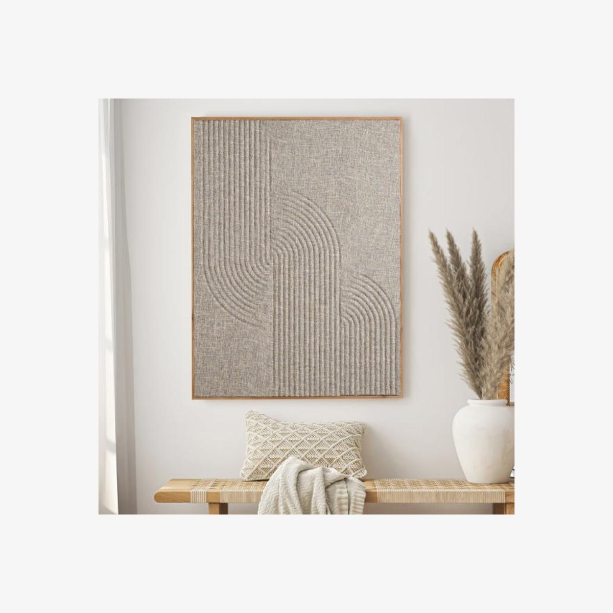 I love this Hestia linen thread 3D wall art for its subtle texture and understated design, which adds depth without overwhelming a space. It works particularly well in minimalist, Scandinavian, or boho interiors where natural tones and textures are key. To style it effectively, consider pairing it with soft neutral furnishings and adding layered textiles like cushions or throws for a cosy feel. It’s versatile enough to work as a focal point above a sofa or bed, or as part of a gallery wall for added interest. Keep the surroundings simple to let the texture stand out and create a calm, cohesive look.