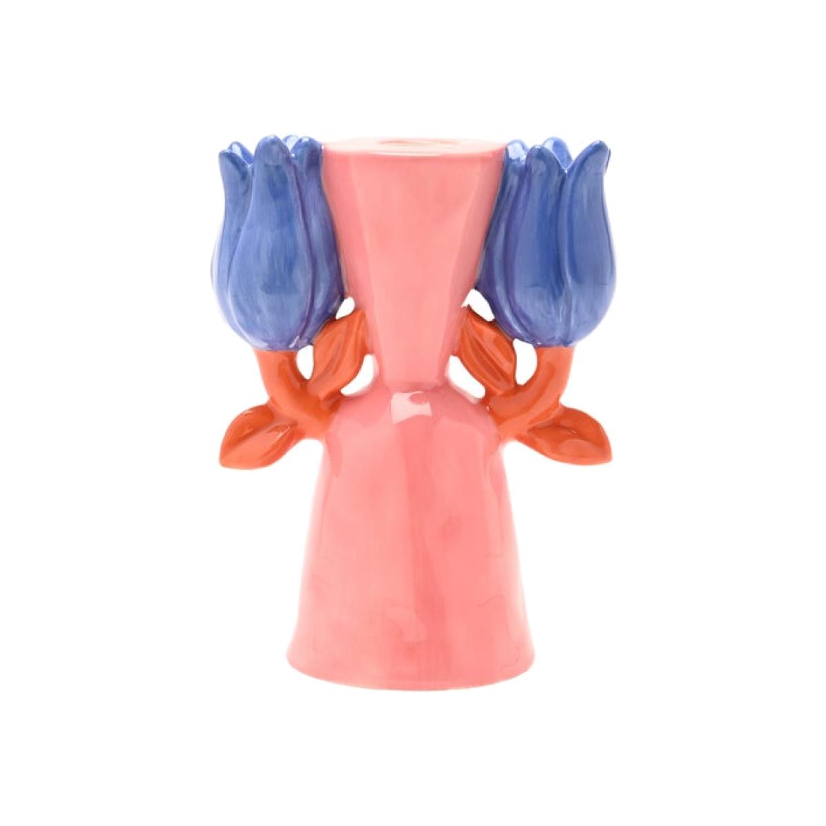 * Glazed ceramic candle holder * Vibrant pink, orange and blue * Bold flower-shaped design * Fits taper candles (not included) Bring instant cheer to your space with the Hestia Pink Flower Candlestick Holder. Made from glossy ceramic, its sculptural floral shape and vivid hues make a lively focal point on mantels, tables or shelves. Designed for a standard taper candle (not included), it’s an easy way to add a warm glow with a playful twist. Style solo for a pop of colour or pair with coordinating pieces for a curated look.