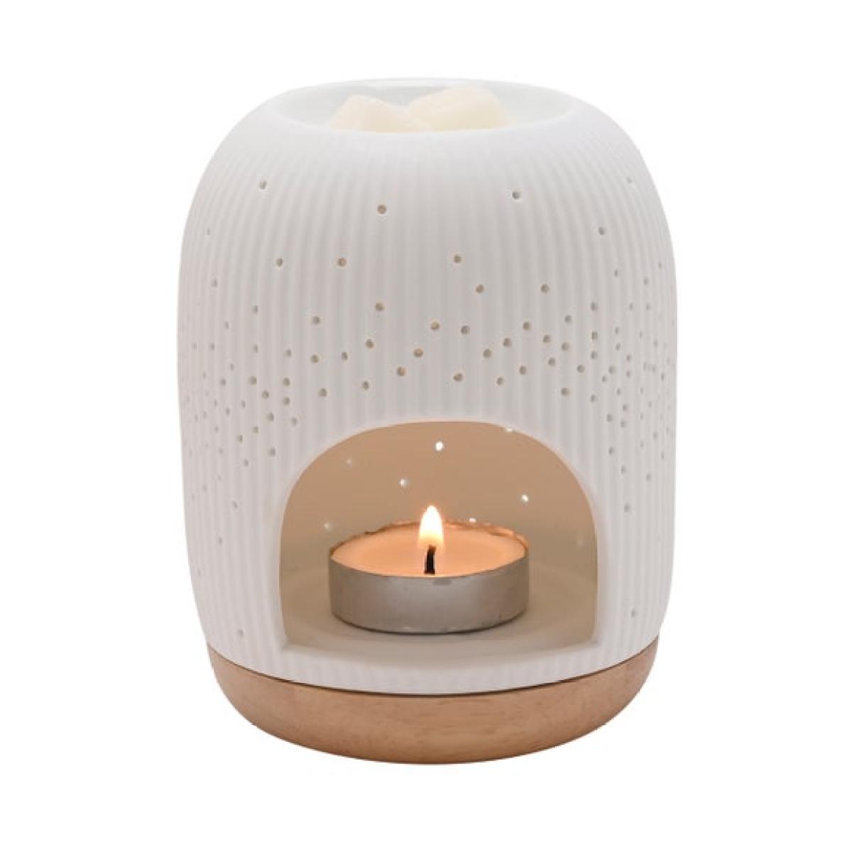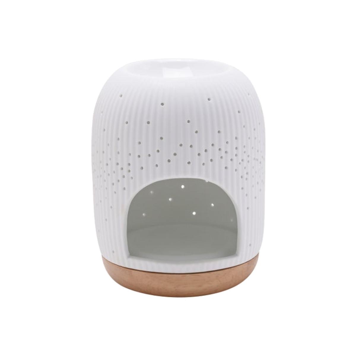 * Ridged white ceramic * Intricate pinhole pattern * Natural wooden base * Designed for wax melts (not included) Add a refined touch to your home with the Hestia Ridged Ceramic Wax Melt Burner. Its crisp white finish and delicate pinhole detailing create a beautiful play of light and shadow when lit. The wooden base brings a natural warmth, balancing the clean ceramic design. Perfect for use with your favourite wax melts and tealights (not included), it combines style and fragrance for a cosy, inviting atmosphere.