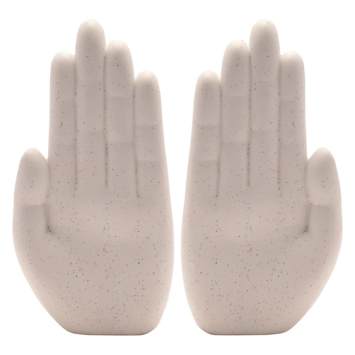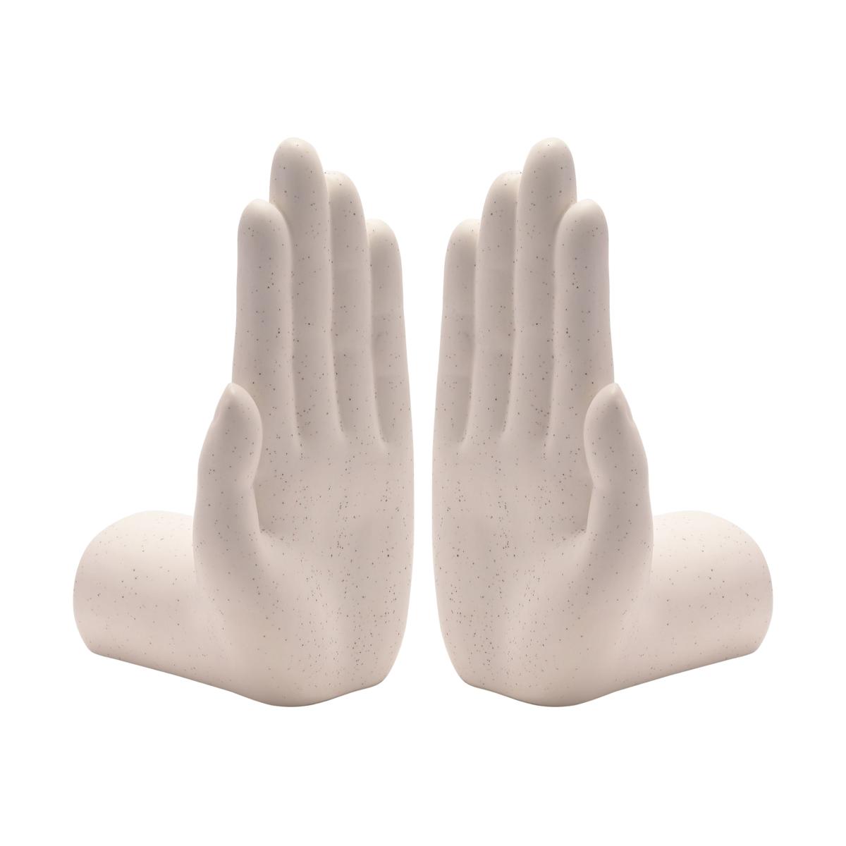 * Durable ceramic composition * Unique design * A stylish addition to any bookshelf Add an artistic touch to your shelves with the Hestia Set of Ceramic Hands Bookends. These two white ceramic sculptures feature stylised hand gestures and a subtle speckled finish, making them both functional and visually striking. Whether used to cradle your favourite books or styled solo as décor, they add creativity and character to any living or office space.