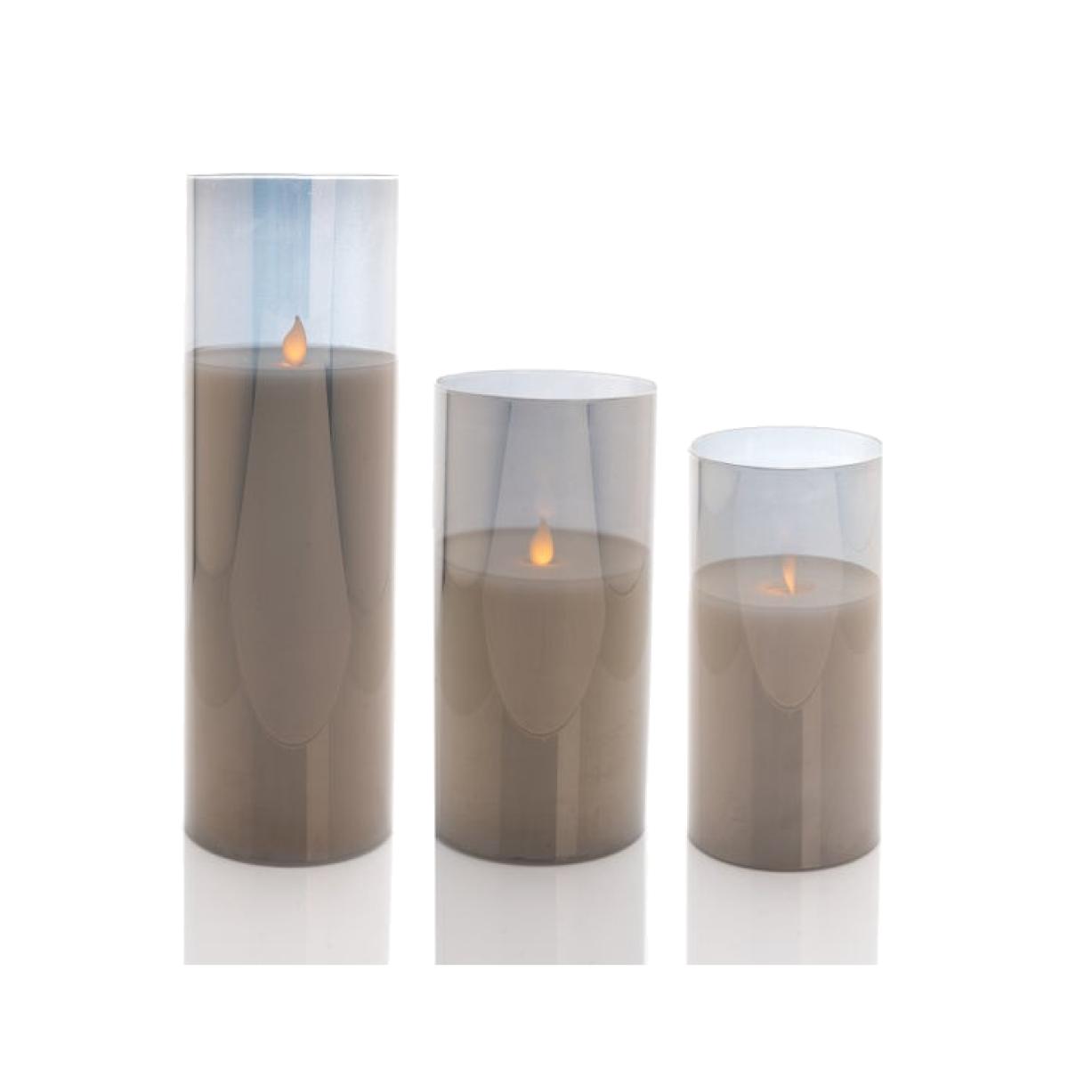 * Set of 3 * Requires 6 AA batteries * Perfect for family homes Create a cosy glow without the worry of an open flame with the Hestia Set of 3 LED Candles. Designed with sleek grey glass, these stylish candles bring a calming ambience to any room. Their realistic LED flames flicker gently, making them a safe and hassle-free choice for family homes. Simply pop in the batteries, and let them cast a warm, inviting light. With three different sizes, they’re perfect for layering on shelves, side tables, or mantelpieces. Effortless elegance, all in one glowing set.