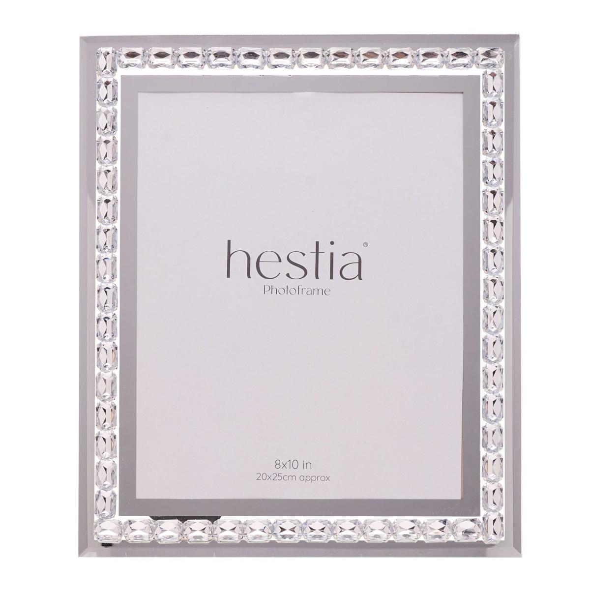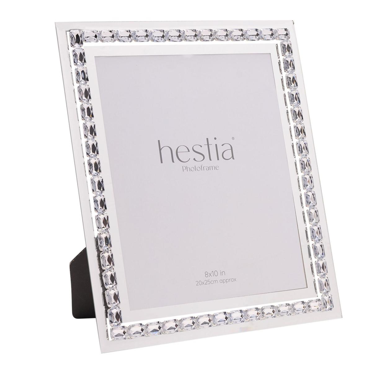 * Elegant crystal design * A great gift idea * Portrait or landscape orientation * Available in multiple sizes This stunning Hestia Silver Crystal Photo Frame features a silver finish with a crystal design, adding a touch of luxury to showcase your memories. Designed for either orientation, it includes a sturdy stand for easy display on any surface. This photo frame is available in multiple sizes.