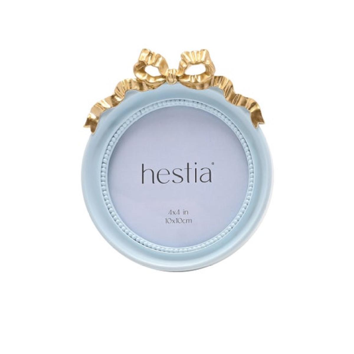 * Soft blue round frame * Elegant gold bow detail * Gentle pop of colour * Holds a 4" x 4" photo * Easel stand for freestanding display Sweet and timeless, this round Hestia frame pairs a delicate light blue finish with a graceful golden bow detail for instant style. Sized for a 4" x 4" (10cm x 10cm) photo, it’s perfect for a favourite snapshot or milestone moment. The integrated easel stand makes display effortless on desks, shelves or side tables. A thoughtful finishing touch that blends beautifully with both classic and contemporary interiors.