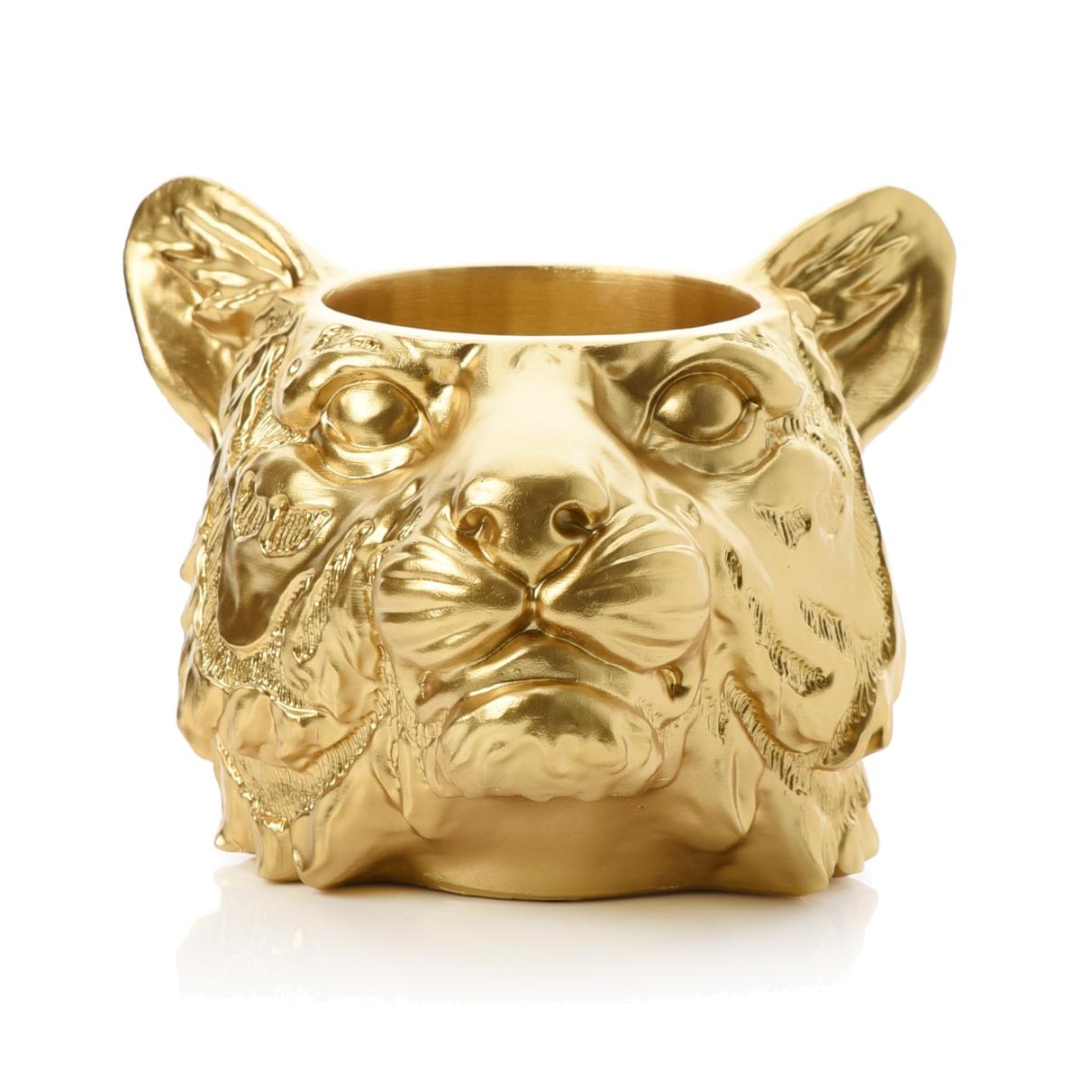 * Durable composition * Unique Tiger shaped design * 15.5cm diametre Unleash your wild side with the Hestia Tiger Gold Finish Plant Pot - a bold and playful statement piece that blends function with flair. Crafted from a durable material and shaped into a stylised tiger form, this pot features a shimmering gold finish that adds instant glamour to any room. Perfect for housing succulents, ferns, or trailing plants, it brings a splash of exotic energy and modern charm to your home jungle.