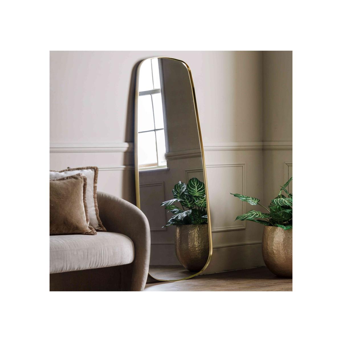 This leaner mirror is a real standout accessory with a unique and timeless shape that harmonizes beautifully with its surroundings. Why you'll love it Full-length leaner mirror with plenty of grandeur and beauty. Available in a choice of sophisticated black or elegant gold. A dazzling focal point that magnifies beauty. Made with care. What you need to know For indoor use only. Ensure the mirror is secure against the wall to prevent it from tilting forward. Dimensions Height: 170 cm (67 in). Depth: 4 cm (2 in). Width: 70 cm (28 in).