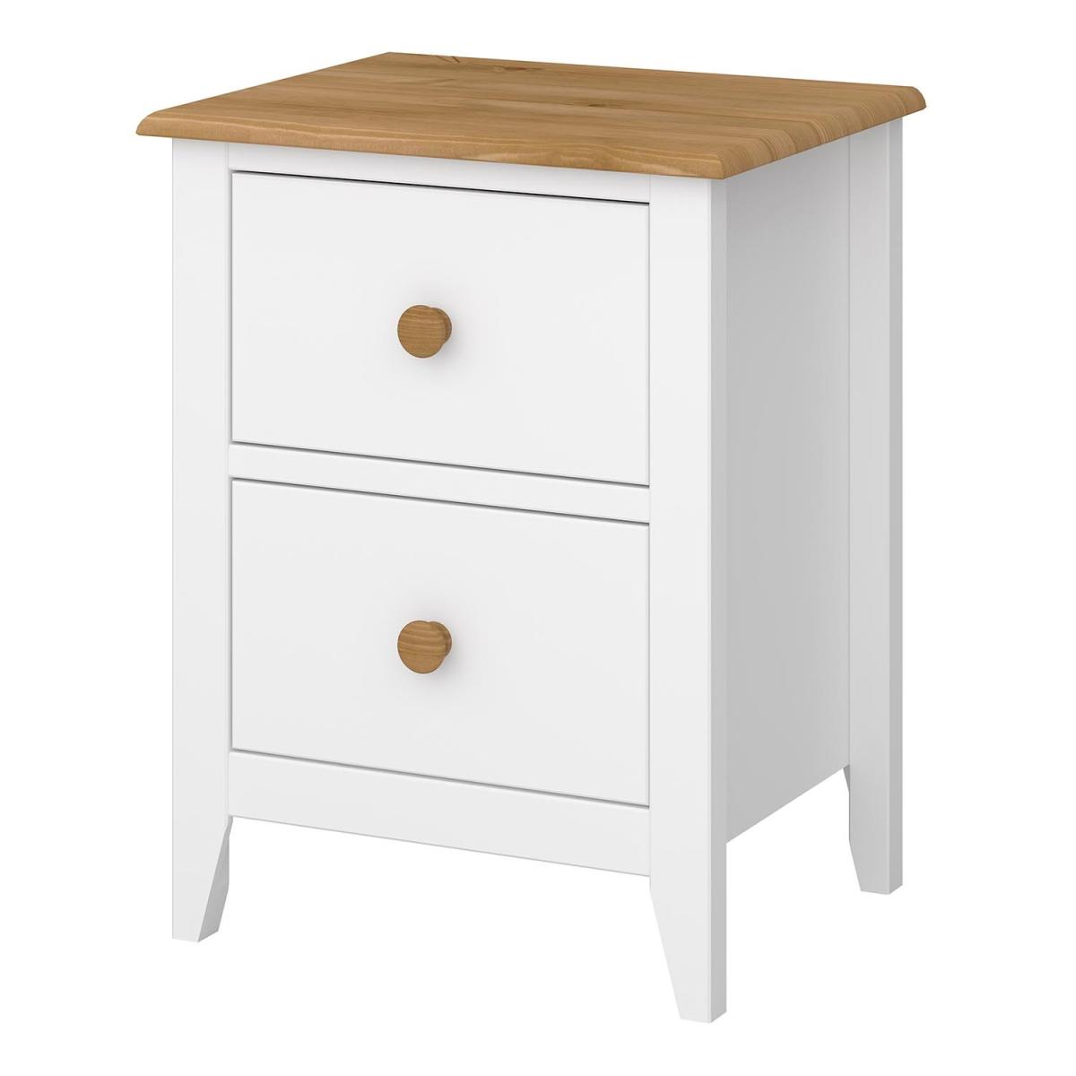 I really like this bedside table because of its clean, versatile look and the way it combines white with natural pine, making it adaptable for a range of interiors. It works particularly well in coastal, scandi, or traditional schemes where the mix of wood and white helps keep the space light and airy. A practical styling tip is to keep the surface clutter-free with a small lamp, a few books, or a decorative tray. You could also enhance its character by adding warm metallic accents with accessories like brass or bronze, or add soft textures nearby, such as a cosy throw or rug, for a balanced, inviting bedroom.