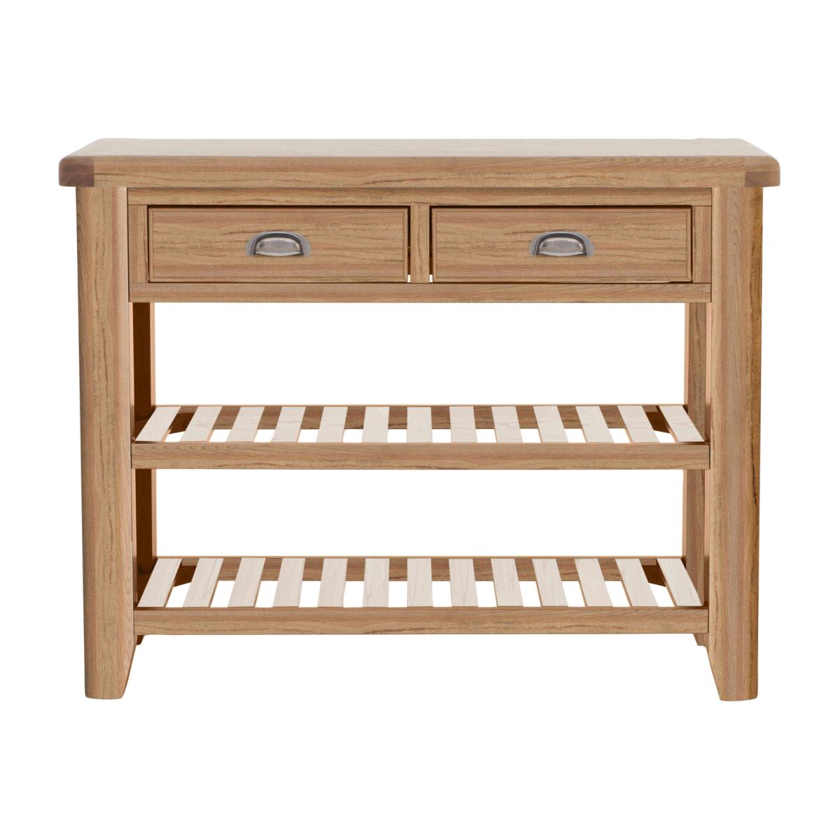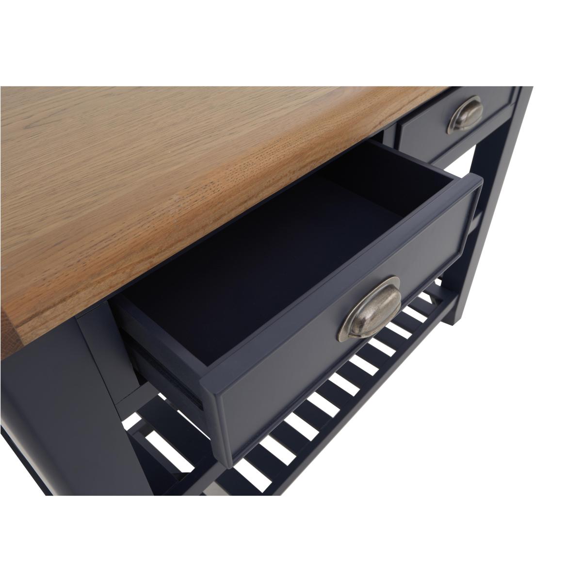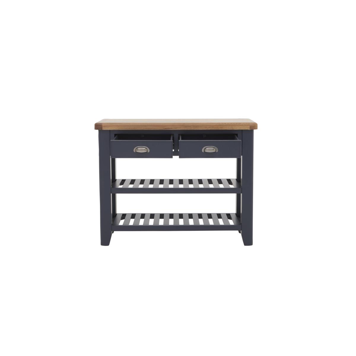 Wherever you place it – hallway, living room or dining room – this lovely console table delivers practical storage and on-trend style. We love that dark blue painted finish. Only at Furniture Village. Why you'll love it. Understated contemporary style with an on-trend dark blue painted finish. Console table showcases impressive craftsmanship. Generously proportioned storage with drawers, baskets and a lower shelf. Contrasting oak top has gently rounded corners. Drawers have metal cup handles in an antique brass finish. This console table is also available in a classic all-oak finish. Part of the extensive Hewitt range of coordinating dining furniture. Exclusive to Furniture Village. What you need to know. Made with solid oak and oak veneers. 2 drawers, 2 storage baskets, lower shelf. Dust with a lint-free cloth. Do not use silicon-based furniture polish. Painted finish is hardwearing but may chip if knocked. Natural oak surfaces may display knots, markings and colour variation. The Hewitt range includes a wide choice of dining tables, dining sets, storage furniture and more. WARNING!. Furniture can tip over unexpectedly and cause injury. This item must be fixed to a wall using the anti-tip kit provided. Be sure to use the correct wall fixings suitable for the walls in your home. Furniture Village is not able to fix anti-tip devices for you. Seek professional advice if you are unsure.
