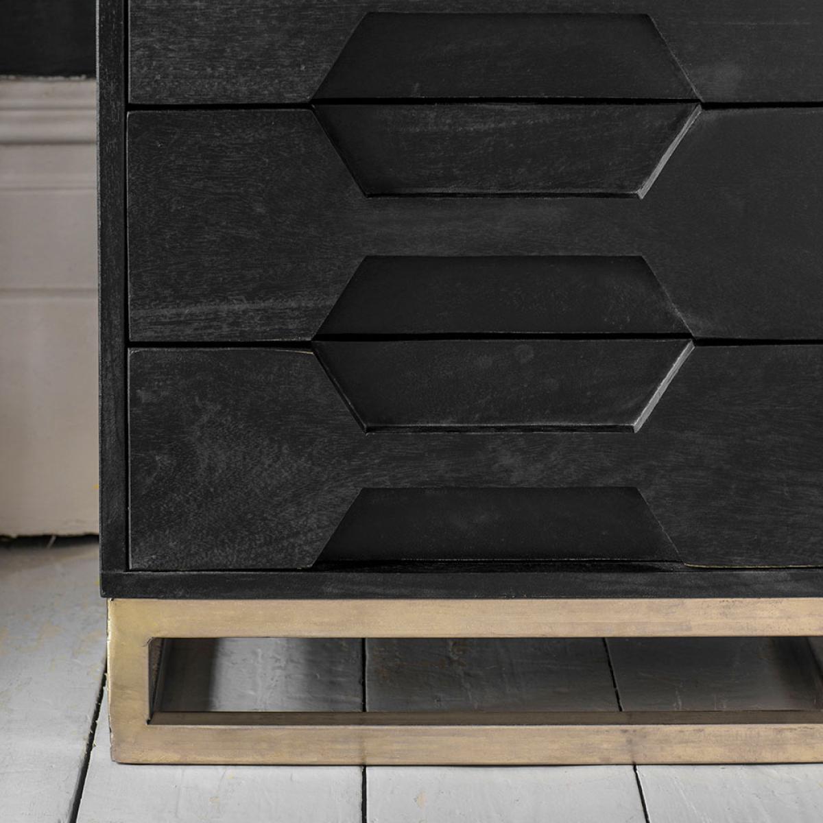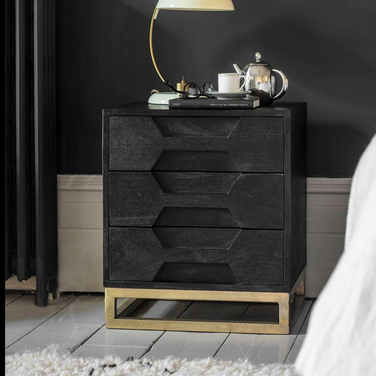 Keep it simple with a black stained mango wood unit featuring a contrasting brass finish for a hint of utility chic. A fantastic option for master bedrooms as well as guest rooms or teen spaces, our Hex Bedside Drawers are a classically understated design that will complement any interior style.