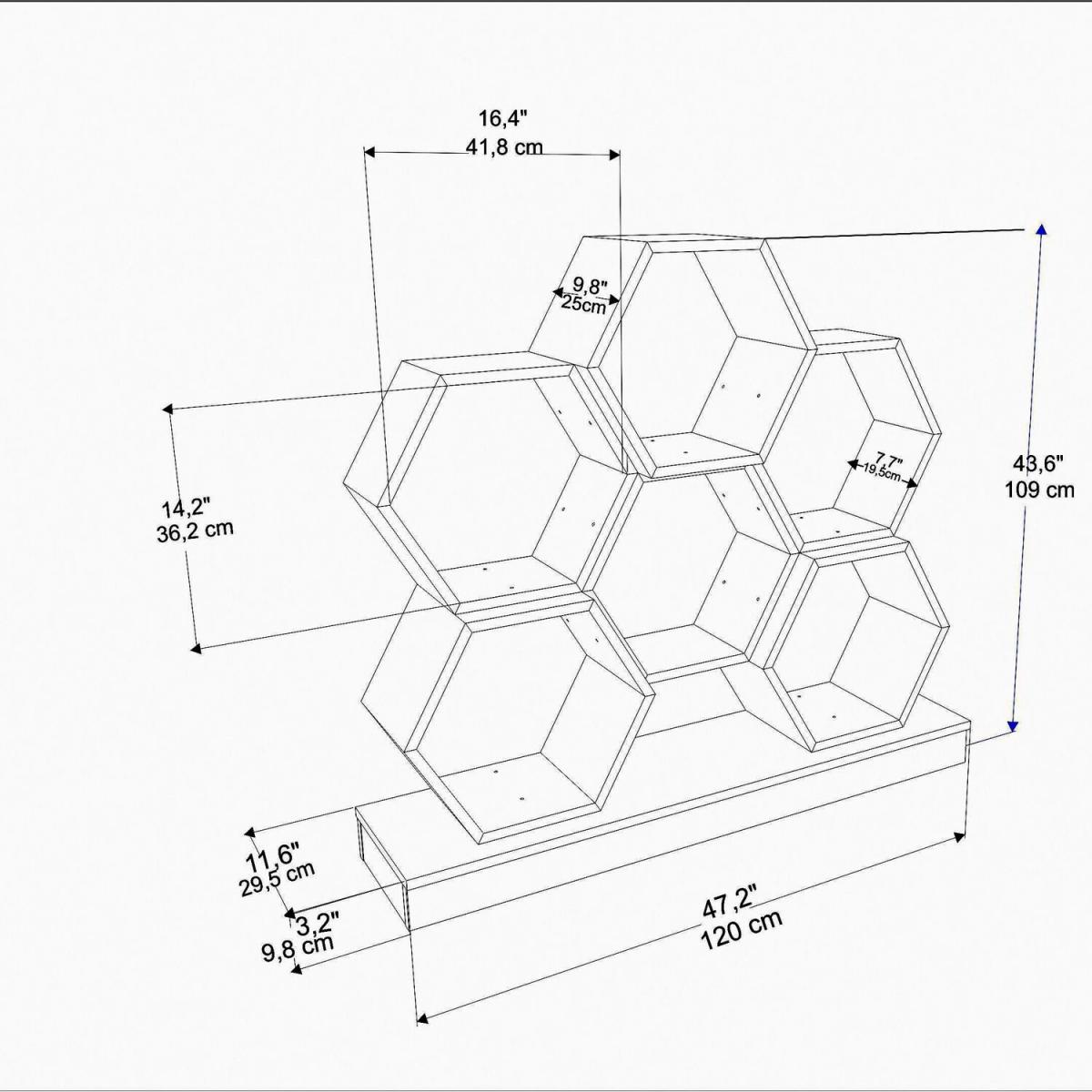 Flower 109 cm tall modern bookshelf has a unique design resembling a flower. The bookcase with 7 open hexagon honeycomb shelves provides enormous space for storing your books and decorative items. The shelving unit is reversible and both the front and back sides can be used. It adds an elegant look to your home/office decor. The bookshelf is made of an 18mm thick melamine veneer particle board and banded with a PVC edge band.