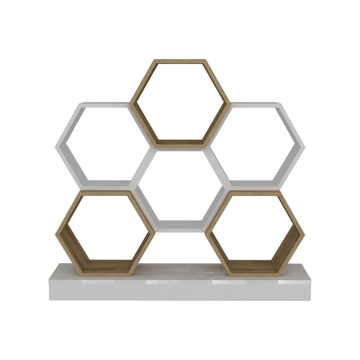 Hexagon 109 cm Tall Modern Bookshelf Bookcase White and Oud Oak - White and Oud Oak
