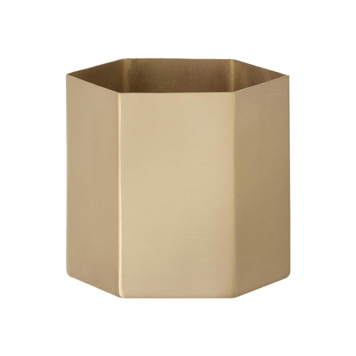 The fabulous Hexagon pot from Ferm Living is made of solid brass with a mat polish and has a modern design with its geometric shape. Put some beautiful flowers or plants in the pot or use it as a stylish interior detail just as it is. Combine the pot with other fine details from Ferm Living. Choose between different sizes.