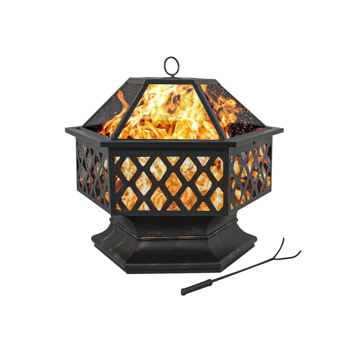 Hexagon Shape Metal Outdoor Fire Pit - Bronze