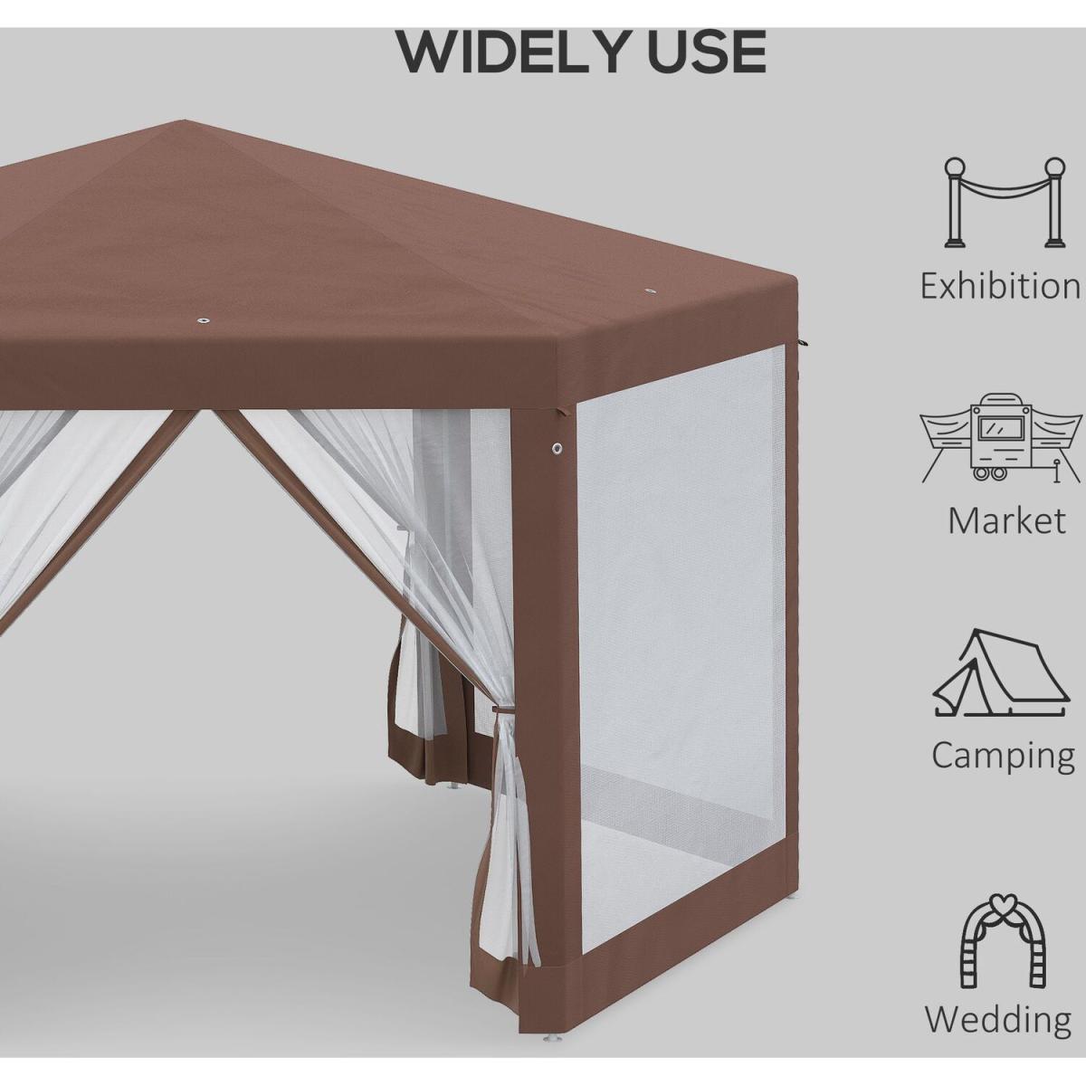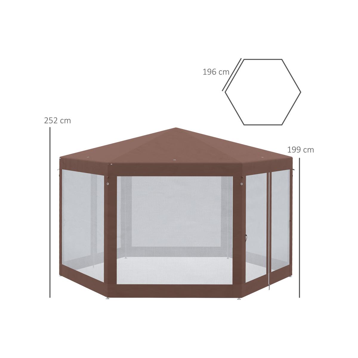 Hexagonal Garden Gazebo with Mosquito Net Zipper - Brown / 196cm