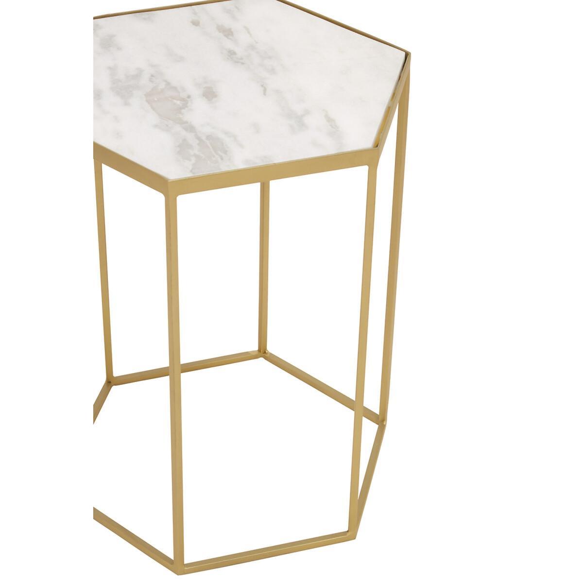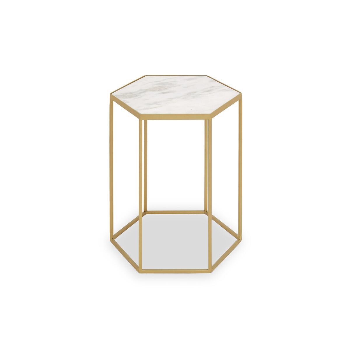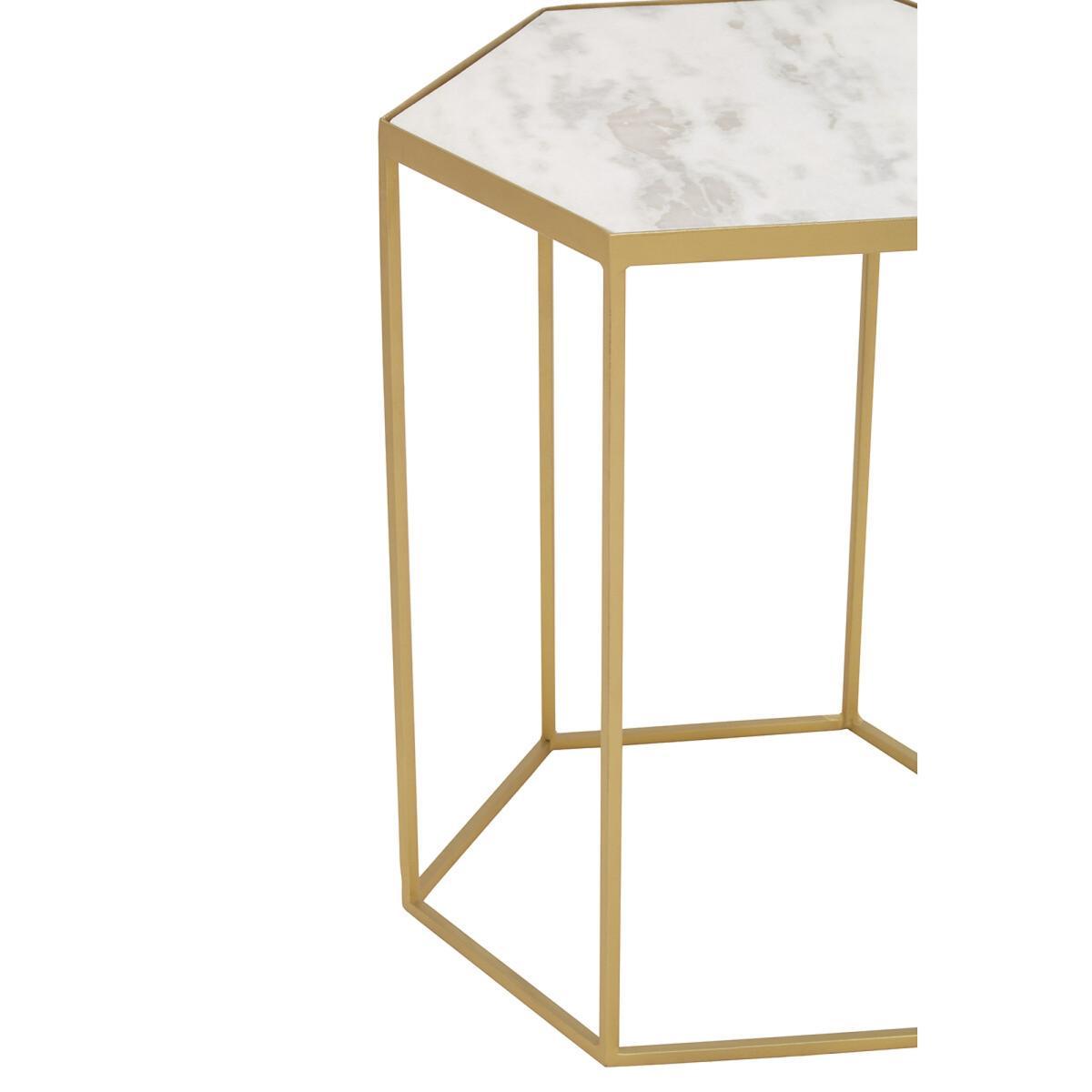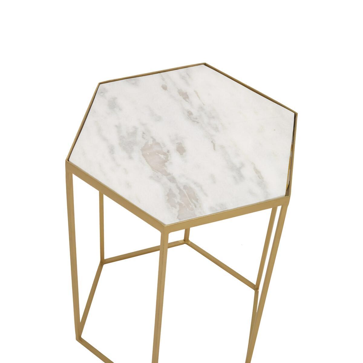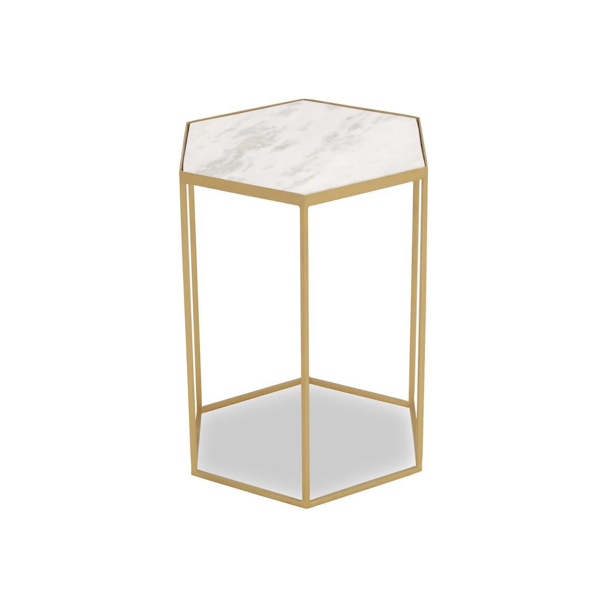Hexagonal Side Table with White Marble Top and Gold Finish Frame
