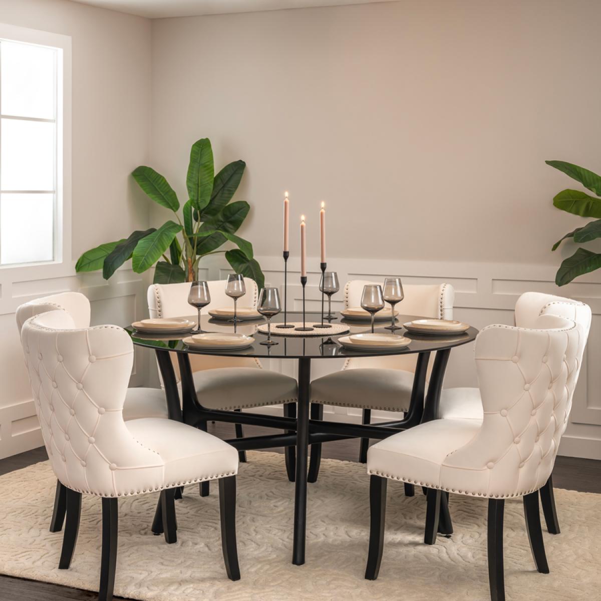 I usually just call it the hexapod table - its sculptural, matte-black base brings both character and stability without overwhelming the room. It works equally well in a pared-back Scandi setting, a raw-edge industrial scheme or even a neutral, contemporary space as a statement anchor. To style it, keep clutter to a minimum: try a simple linen runner, a low-profile ceramic vase and a couple of brass candlesticks. Surround it with mid-century chairs in cognac leather or soft grey upholstery, and hang a slim, linear pendant light above to emphasise its clean lines.