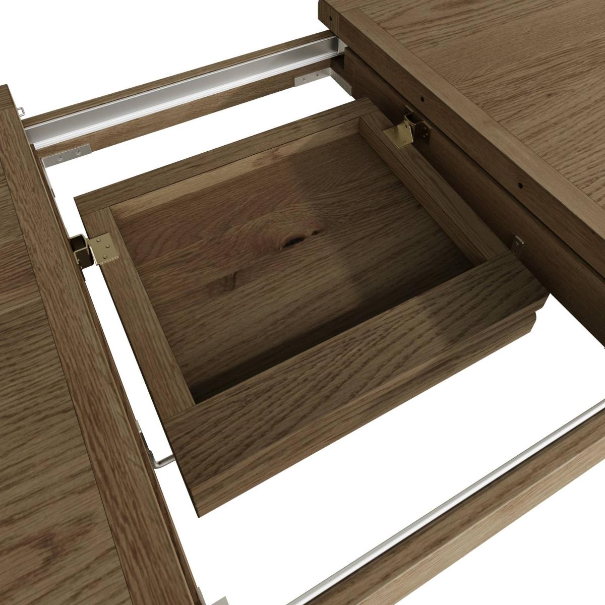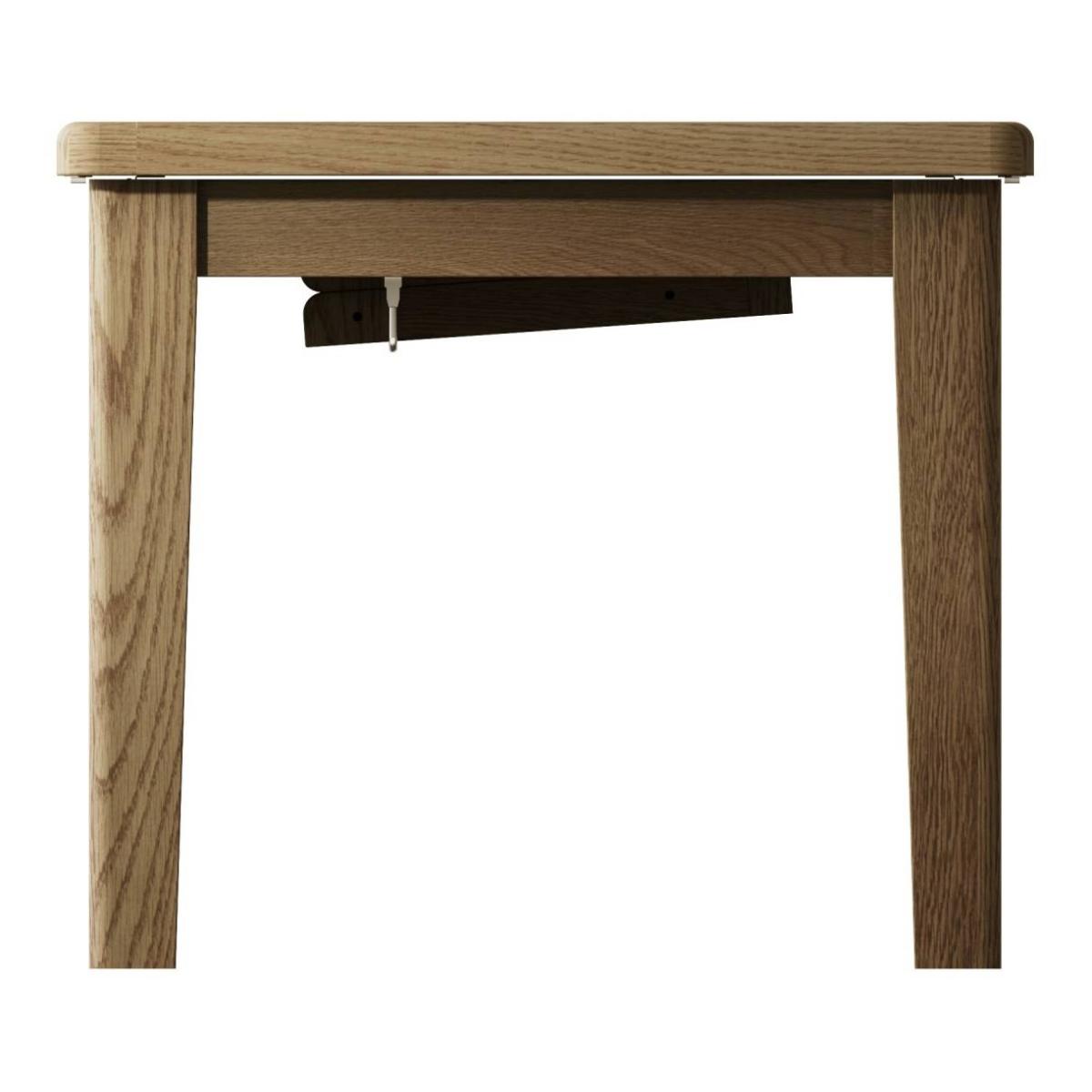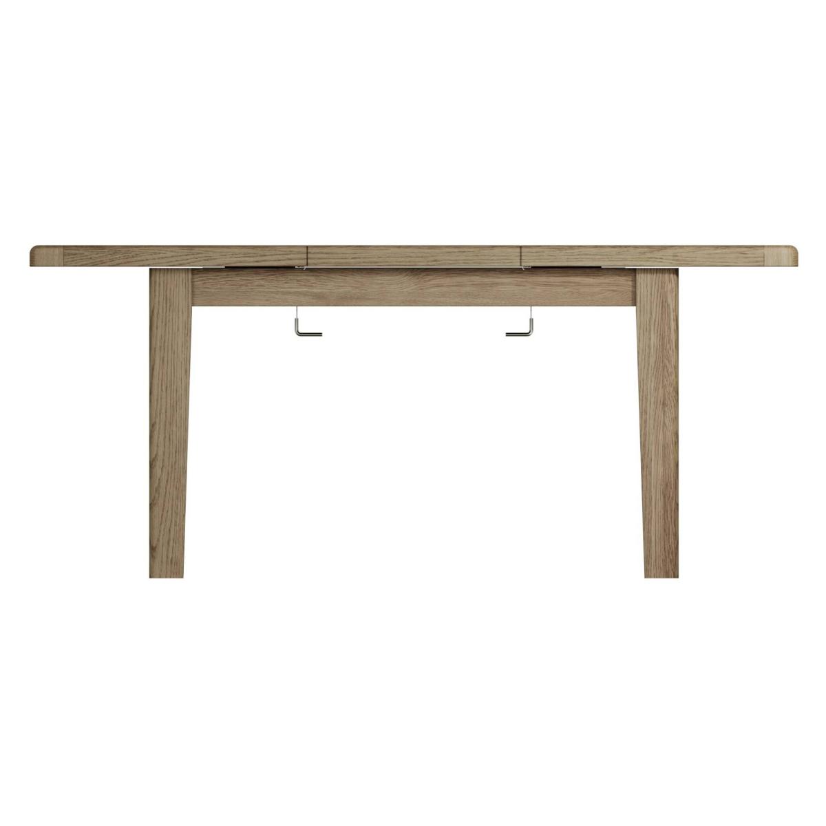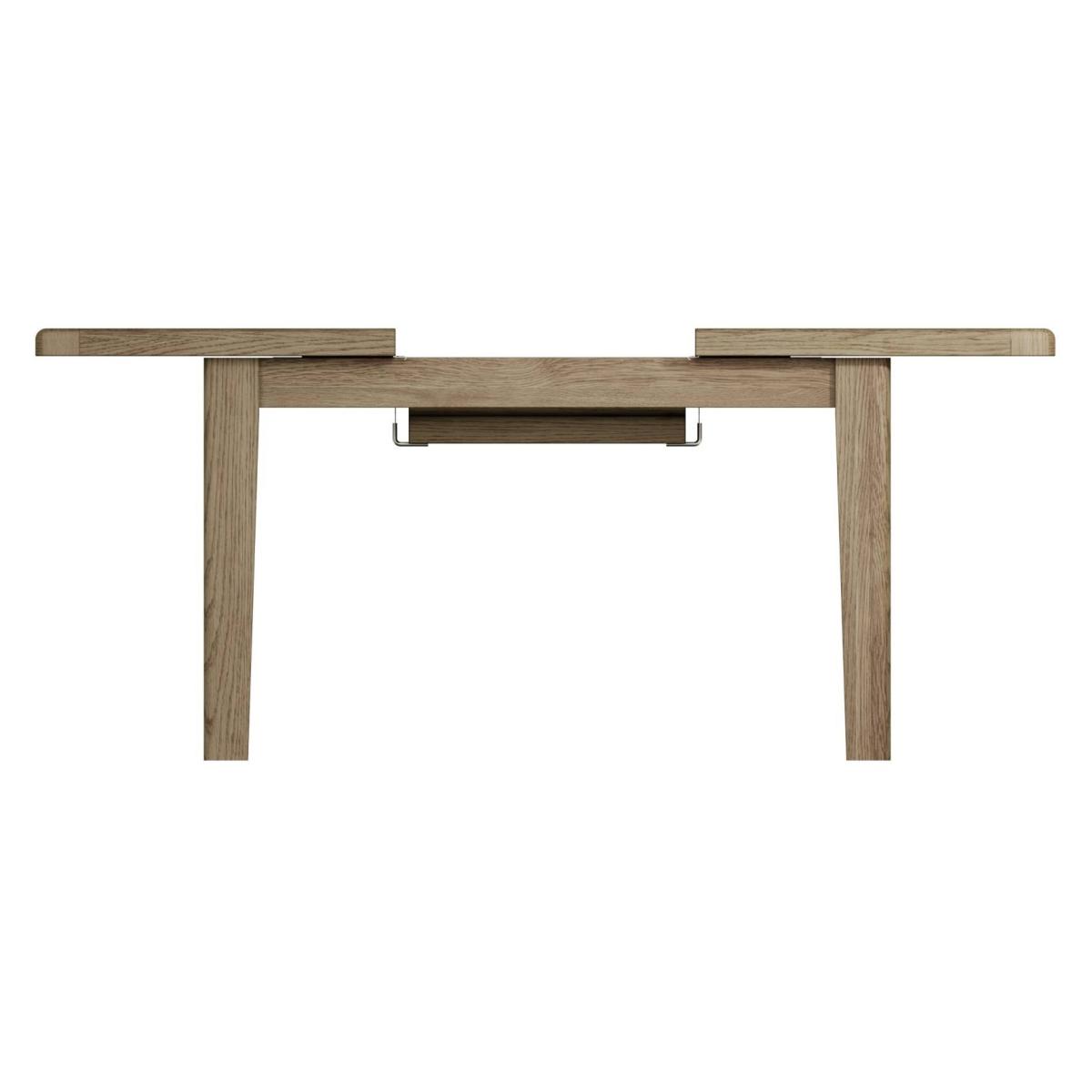 Create a stunning look for your dining room with the Hexham Dining Furniture collection. With chunky oak tops and smooth rounded corners combined with the eye-catching smoked oak finish, this furniture collection exudes class and style and will be sure to make a statement in any home. Extending Dining Table in Smoked Oak Finish. Extends from 130cm to 180cm Hidden Butterfly Mechanism Aluminium ball bearing runner for smooth extending action Clips to lock in extended or standard position Solid Wood Frame and Oak Veneer Dimensions: W: 130-180cm x  D: 90cm x H: 78cm Assembly Required All screens vary in colour reproduction and whilst every effort has been made to display the colour as accurately as possible it is for guidance only.