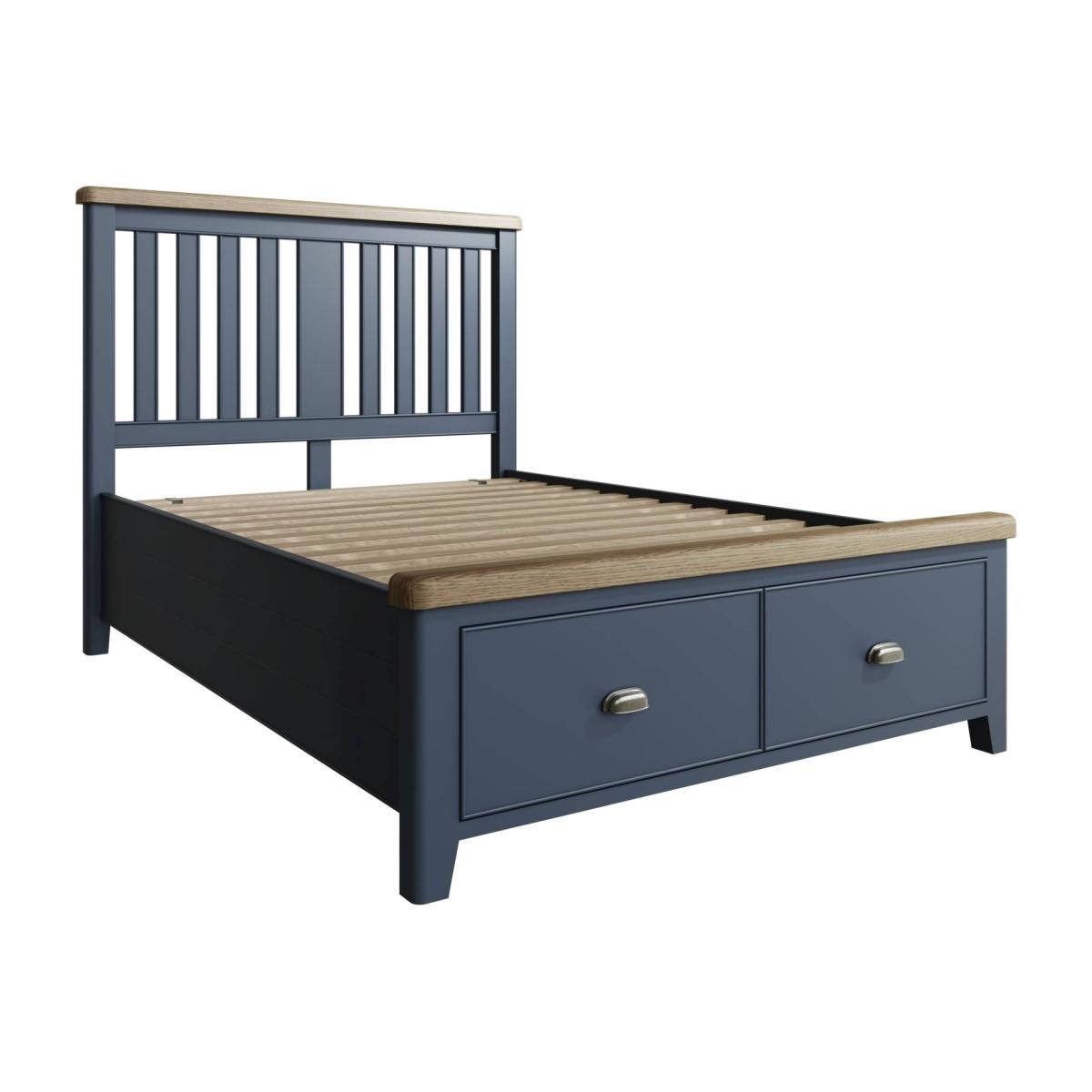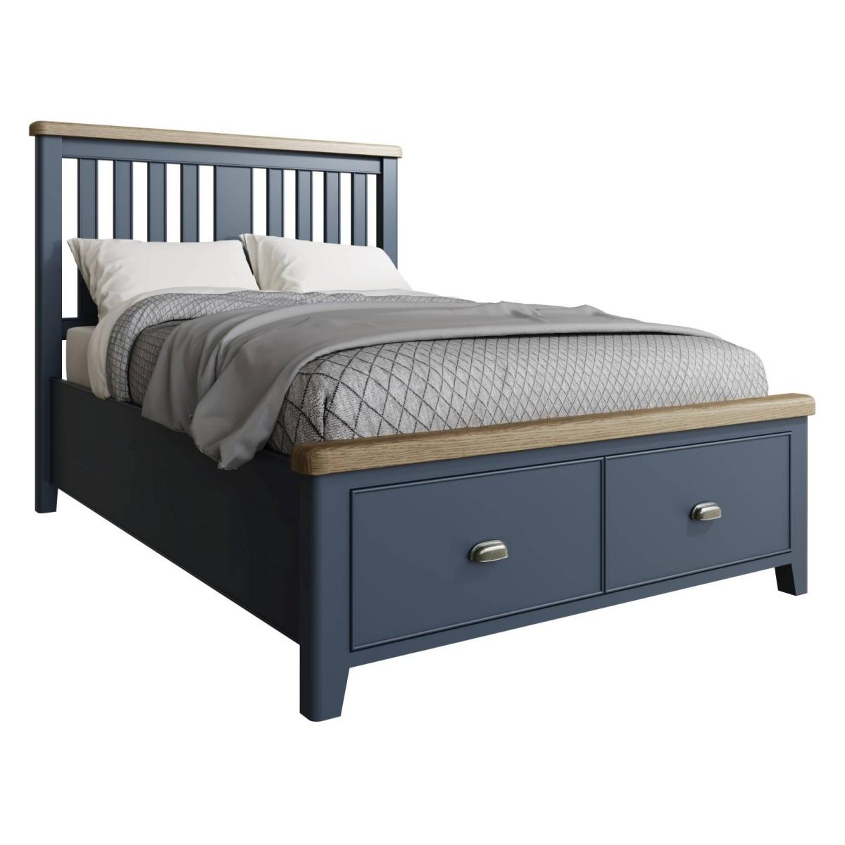 Hexham Painted Blue Bed With Wooden Headboard & Drawer Footboard Set