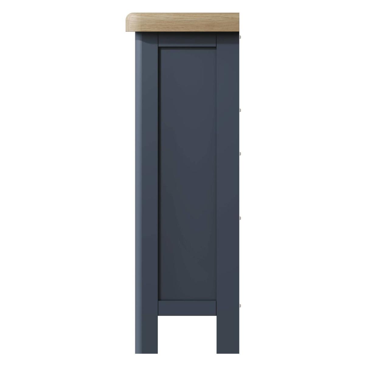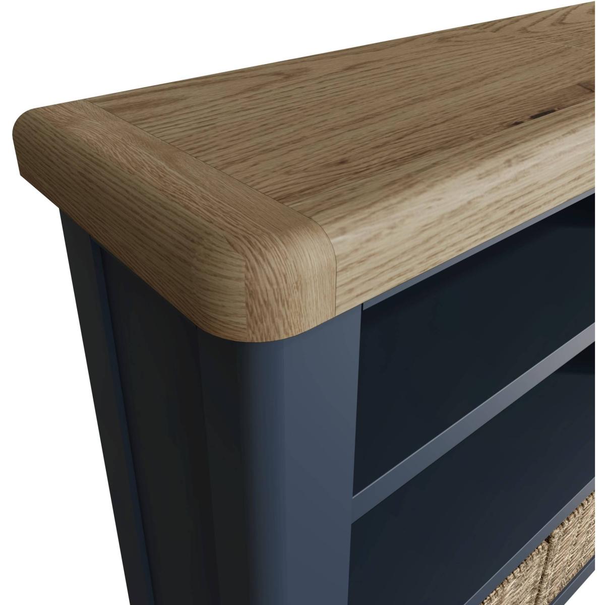 Create a stunning look in your home with the Hexham Furniture collection. With chunky oak tops and smooth rounded corners combined with the eye-catching painted blue smoked oak solid frames, this furniture collection exudes class and style and will be sure to make a statement in any home. Painted Blue and Smoked Oak Solid Wood Frame Adjustable Shelf 2 Wicker Storage Baskets Rounded Corners and Tapered Legs Ready Assembled Dimensions - W: 95cm x D: 30cm x H: 90cm All screens vary in colour reproduction and whilst every effort has been made to display the colour as accurately as possible it is for guidance only.