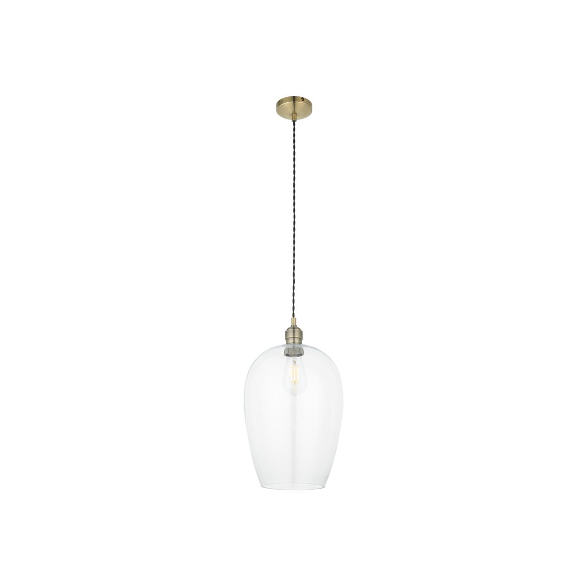 Hexton Large Glass Pendant in Antique Brass