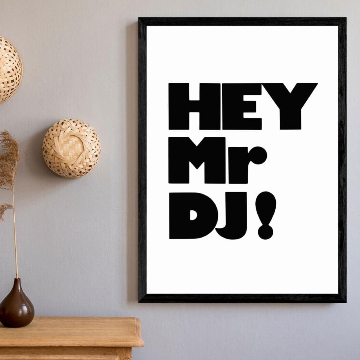 Hey Mr DJ!, Typographic Print Colour: Unframed, Size: A1