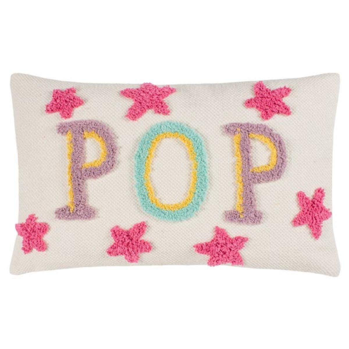 * Bold, Colourful, & Tufted Design * "POP" Motif * Made from 100% Soft Cotton * Plump Polyester Fibre Filling * Classic Knife-Edge Trim * Secure Zip Fastening Featuring tufted cotton letters spelling out “POP”, this bold design adds instant personality. Crafted from super-soft 100% cotton with a plain canvas reverse, knife-edge trim, and zip fastening for a neat finish.
