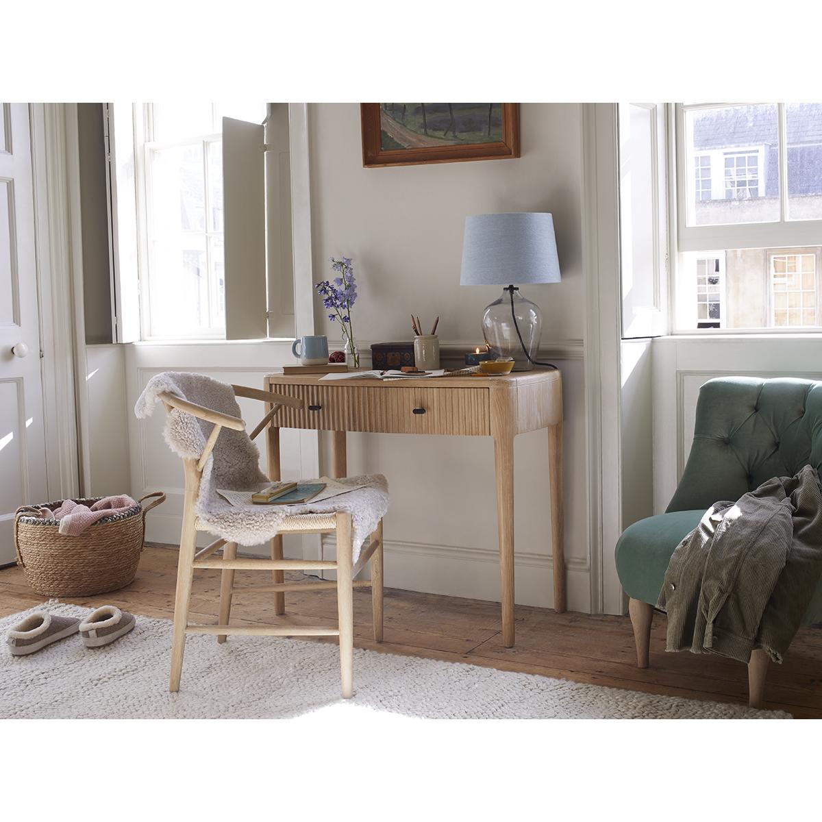 I love this desk for its simplicity and natural finish, which makes it versatile across a range of interiors. It works particularly well in minimalist or Scandinavian-inspired spaces, where its light tone can complement neutral palettes and textured natural materials. To style it effectively, consider adding organised desk accessories and a small decorative piece or plant to bring life to the surface without clutter. Practical tips include using the drawers for essential stationery to keep the top clear and maintaining its fresh look with occasional dusting. It’s a great choice for those seeking a functional yet understated work surface with a contemporary feel.