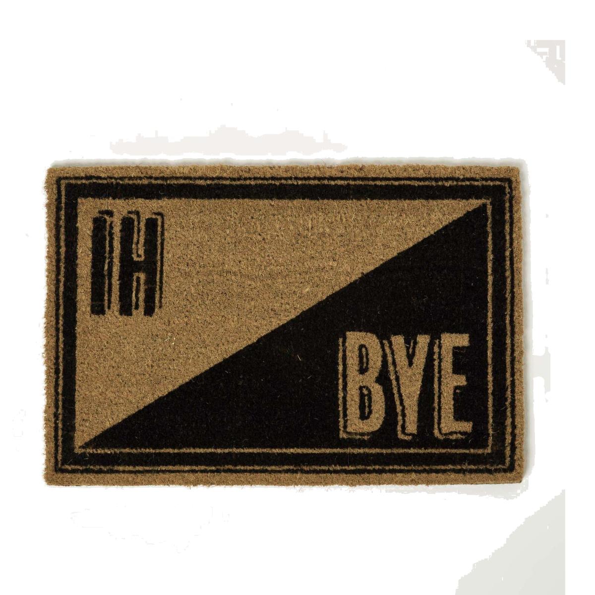 Hi and Bye design durable heavy-duty coir doormats. Measuring 60 x 40 cm, this large double doormat will help keep your home and carpets clean and tidy. Expertly crafted from durable coir, the top is rough to the touch and will help to encourage guests to wipe their feet before entering your home, keeping floors and carpets clean and tidy. With its thick rubber backing, this non-slip doormat is suitable for all grounds including tiles, wood, pebbles and brick and will remain sturdy and in place whatever the weather. Part of Homescapes' collection of doormats the range includes coir door mats, boots scrapers and boot trays. Complete the look with Homescapes collection of garden accessories and garden rugs available in a range of sizes.