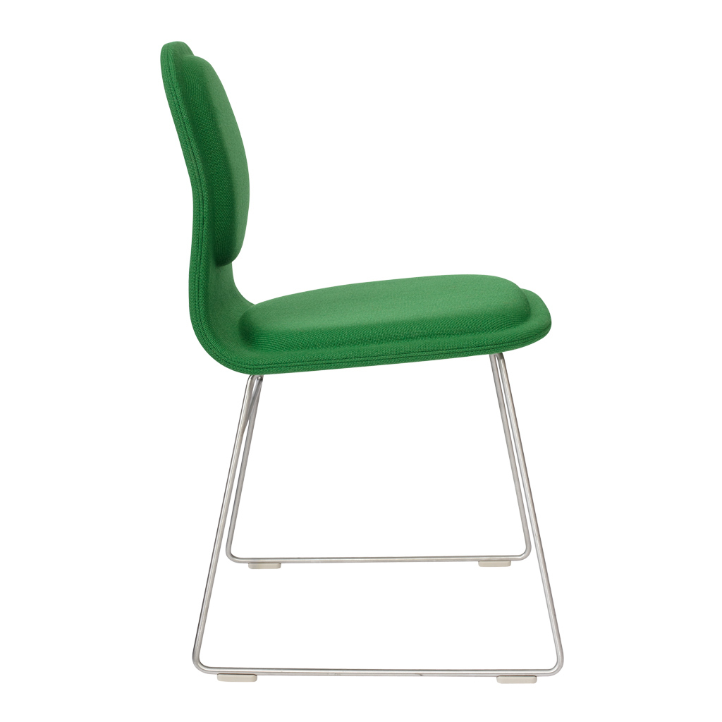 The beautifully minimal green Hi Pad Chair was designed by Jasper Morrison in 1999 and is the perfect distillation of the traditional dining chair. Created for Cappellini, the Hi Pad Chair is crafted from beech and birch plywood, bent in to the unique shape of the frame, and upholstered with moulded multi-density polyurethane foam. This forward-thinking use of moulded materials awards the chair with a supremely supportive and comfortable construction, ideal for any living area or workspace. After graduating from the Royal College of Art, designer Jasper Morrison opened his first design studio in 1986, forging a lasting design partnership with Cappellini shortly afterwards. Characterised by intelligent simplicity, Morrison's designs exhibit refined minimalism and chic, functional clean-lined silhouettes.