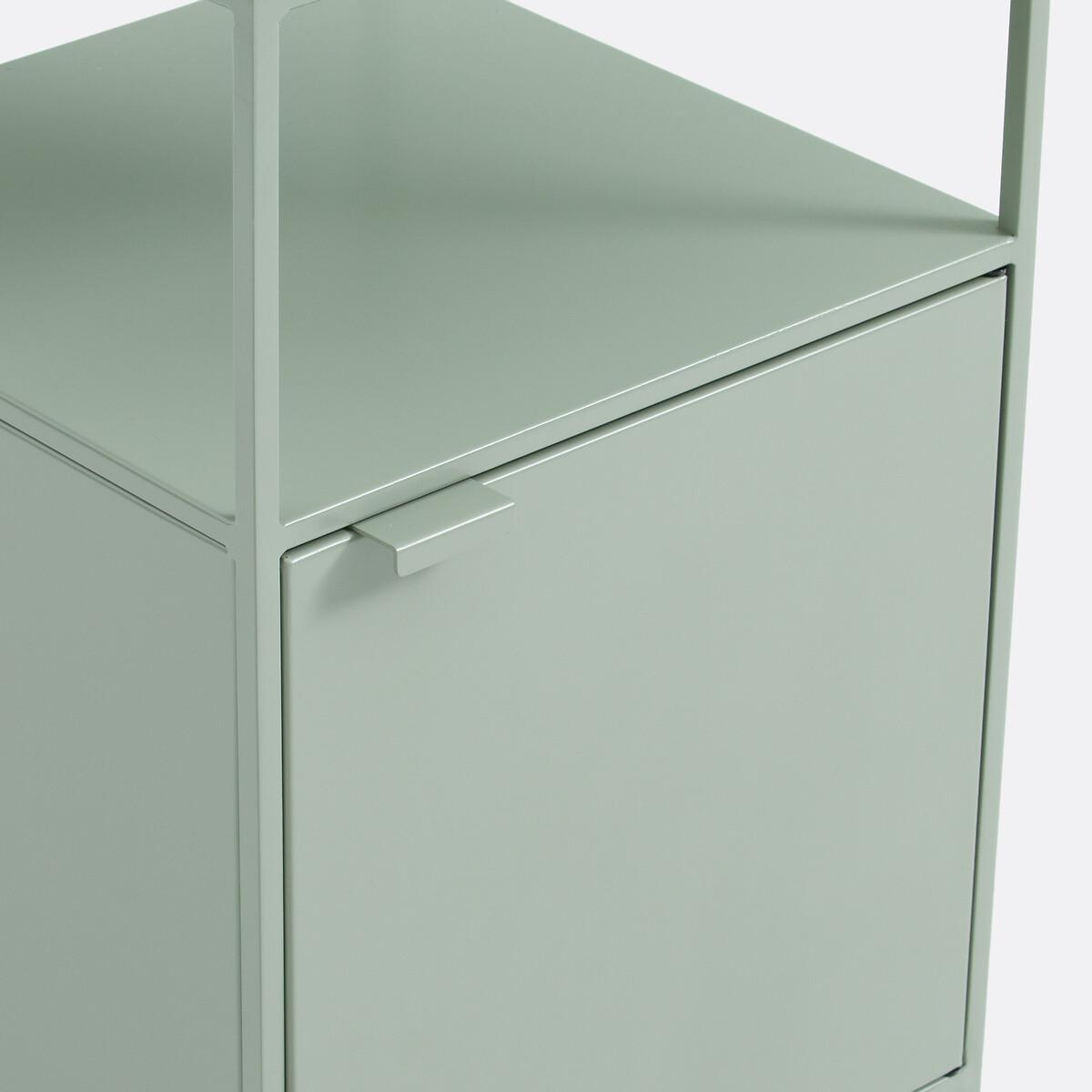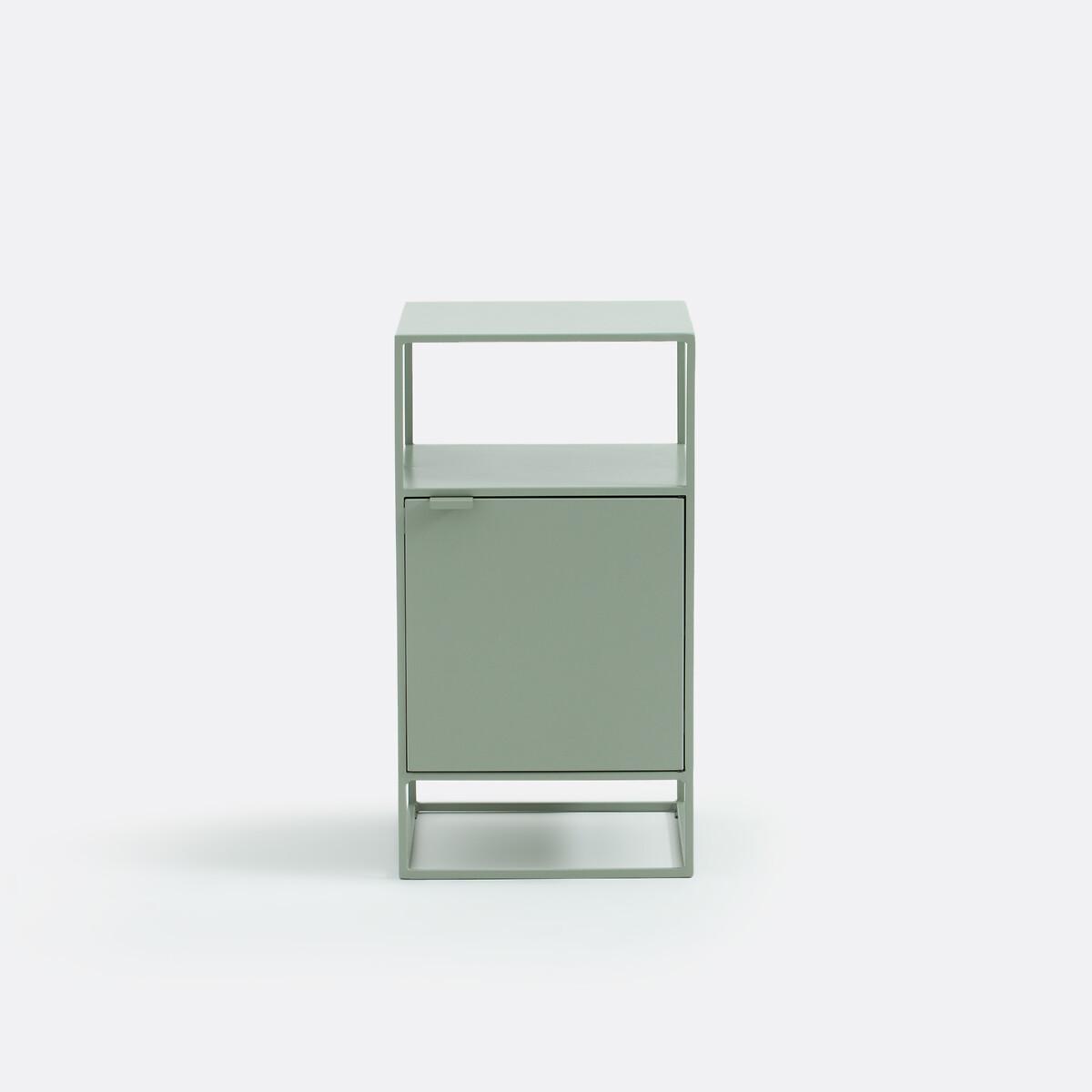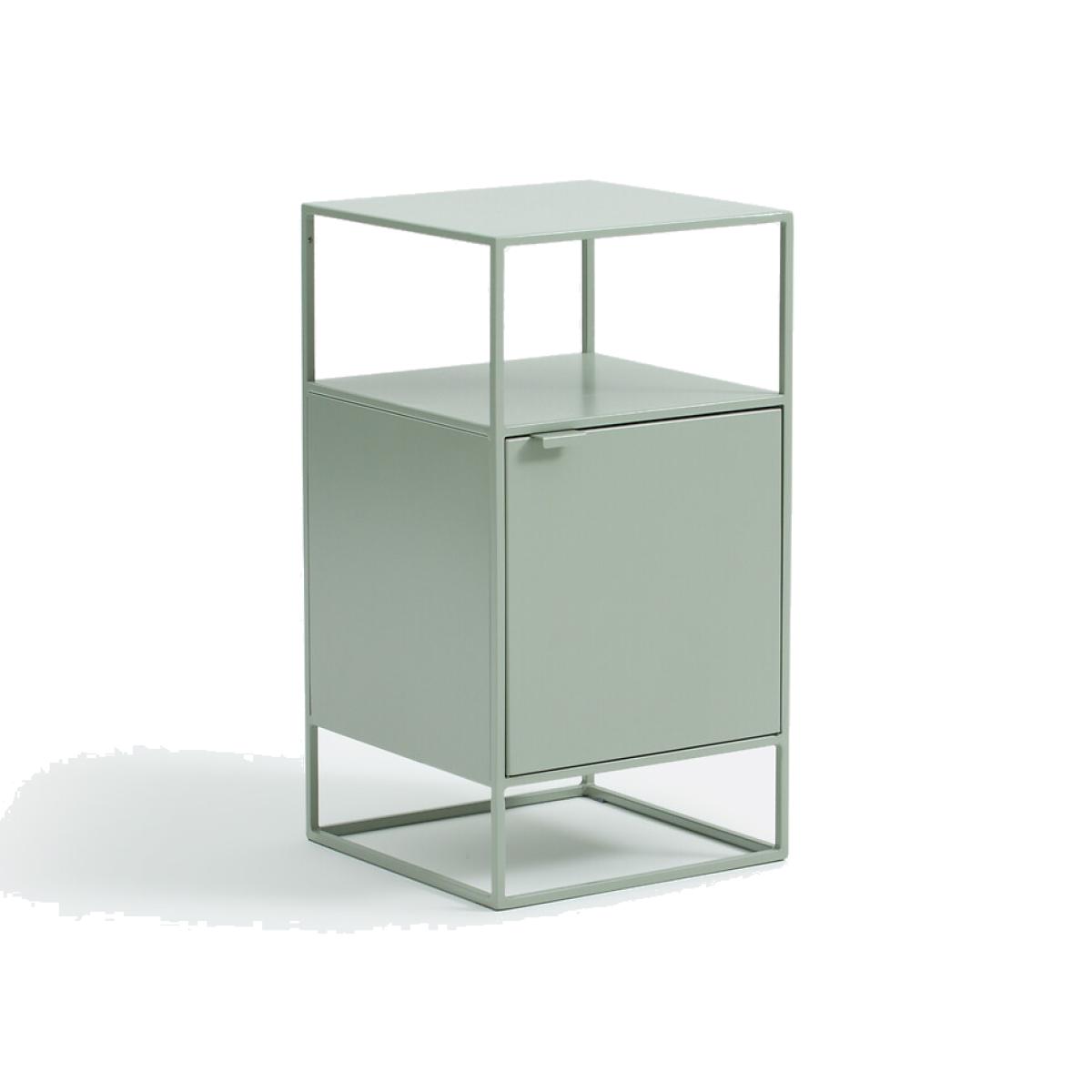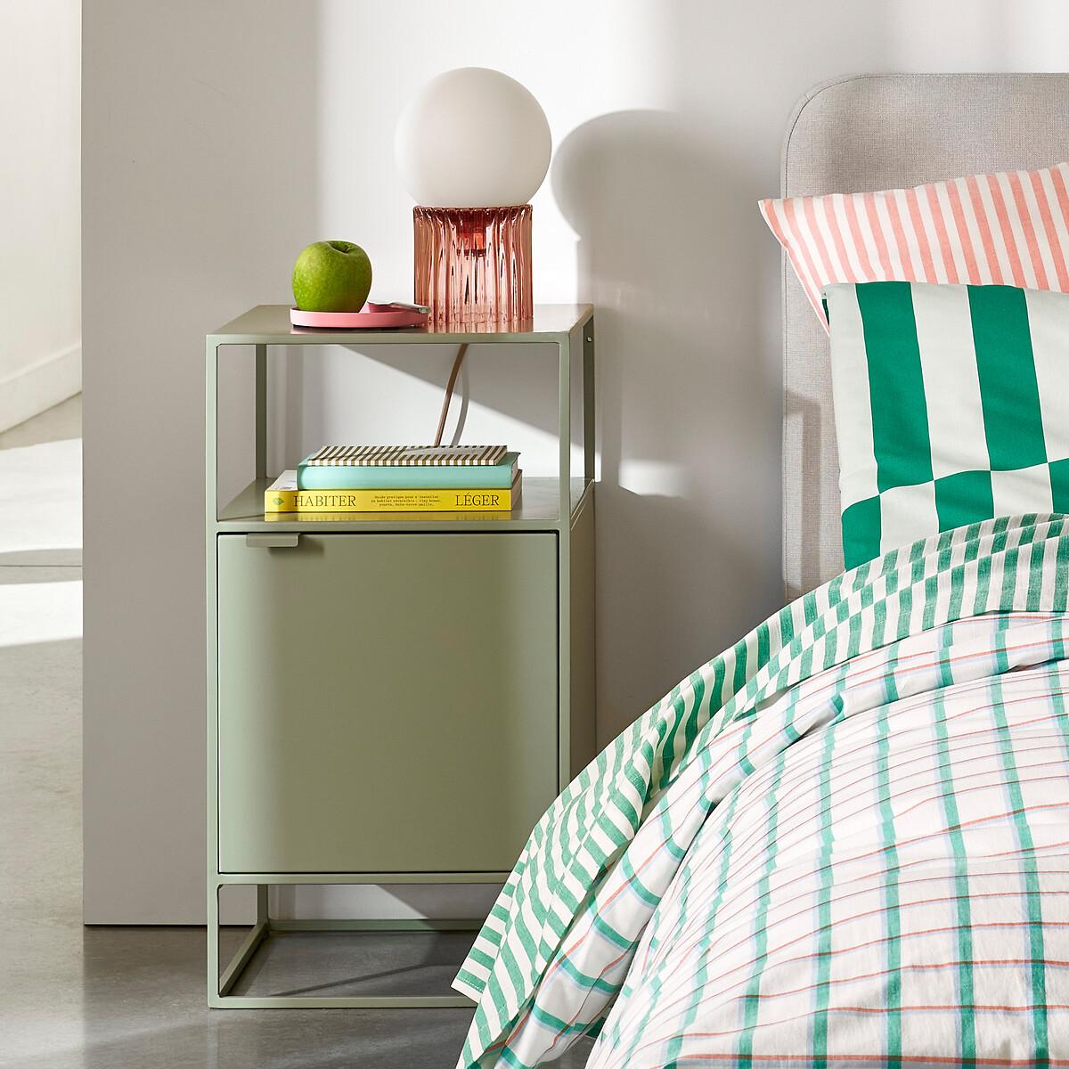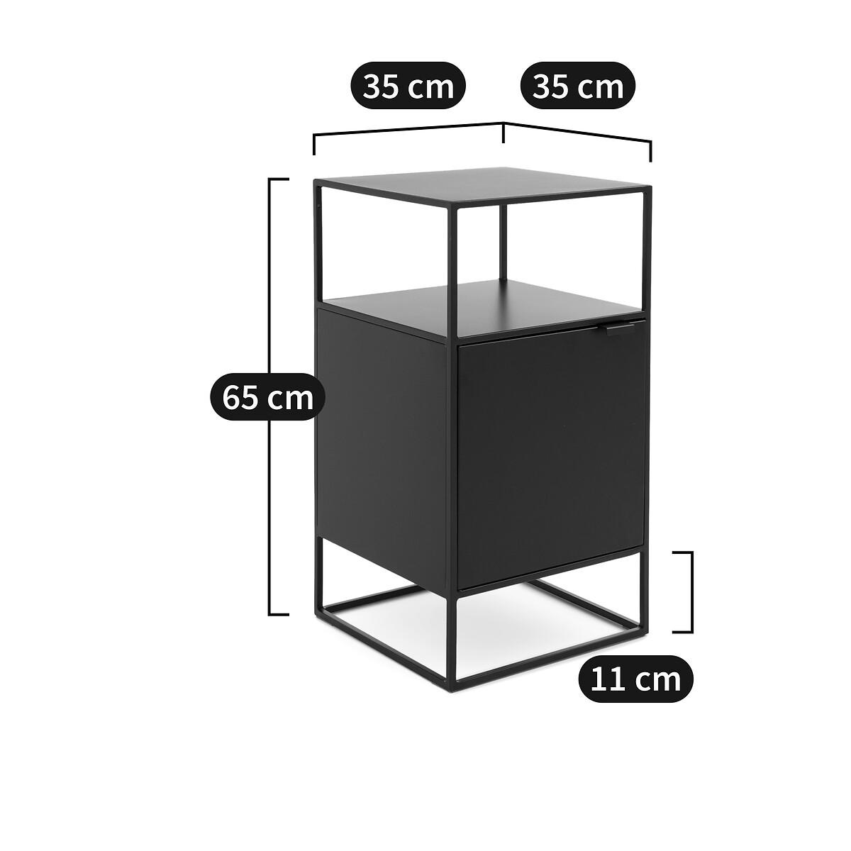 Chic and practical, the Hiba bedside table seduces with its functional side and its refined aesthetic. Equipped with an open storage compartment and a raised box, Hiba stands out with its clever design: reversible door, so you can place it on the left or right of the bed! Designed by La Redoute Interiors. Product Details • 1 reversible door (opening possible on the left or right) with 1 fixed shelf inside • 1 storage compartment outside + 2 storage compartments inside • Steel epoxy finishDimensions. Overall • Width: 35cm • Height: 65cm • Depth: 35cm • Height of legs: 11cm • Weight: 11.6kg. Usable dimensions Interior compartment behind door: • L32.5 x H16 x D35cm Outer compartment: • L32.5 x H16.8 x D35cmDelivery:. Sold pre-assembled. It will be delivered to your door. Note! Please check that all access points are large enough to accommodate your delivery (doors, stairs, lifts).Parcel dimensions and weight • 1 parcel • L42 x H73 x D42cm. 13.3kg