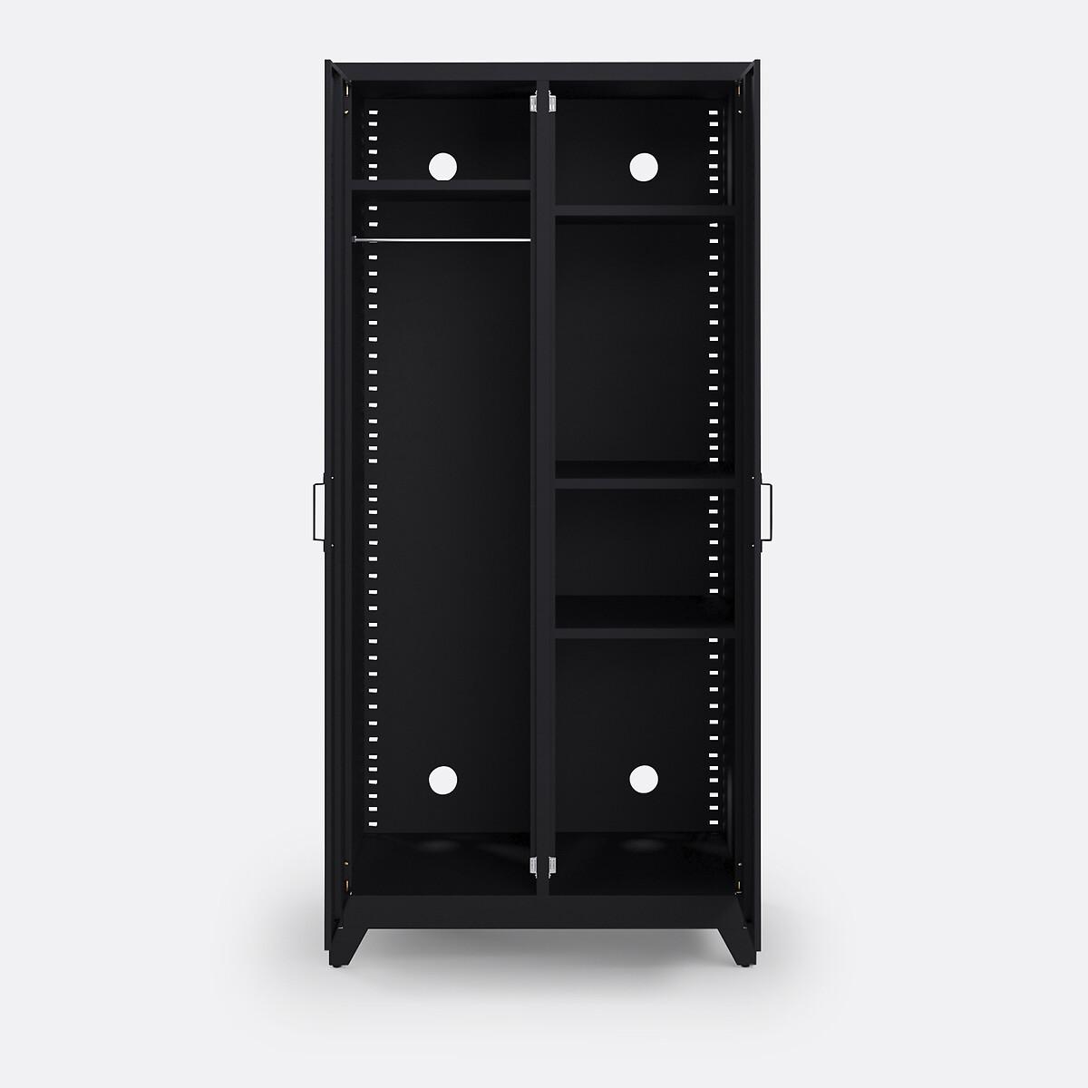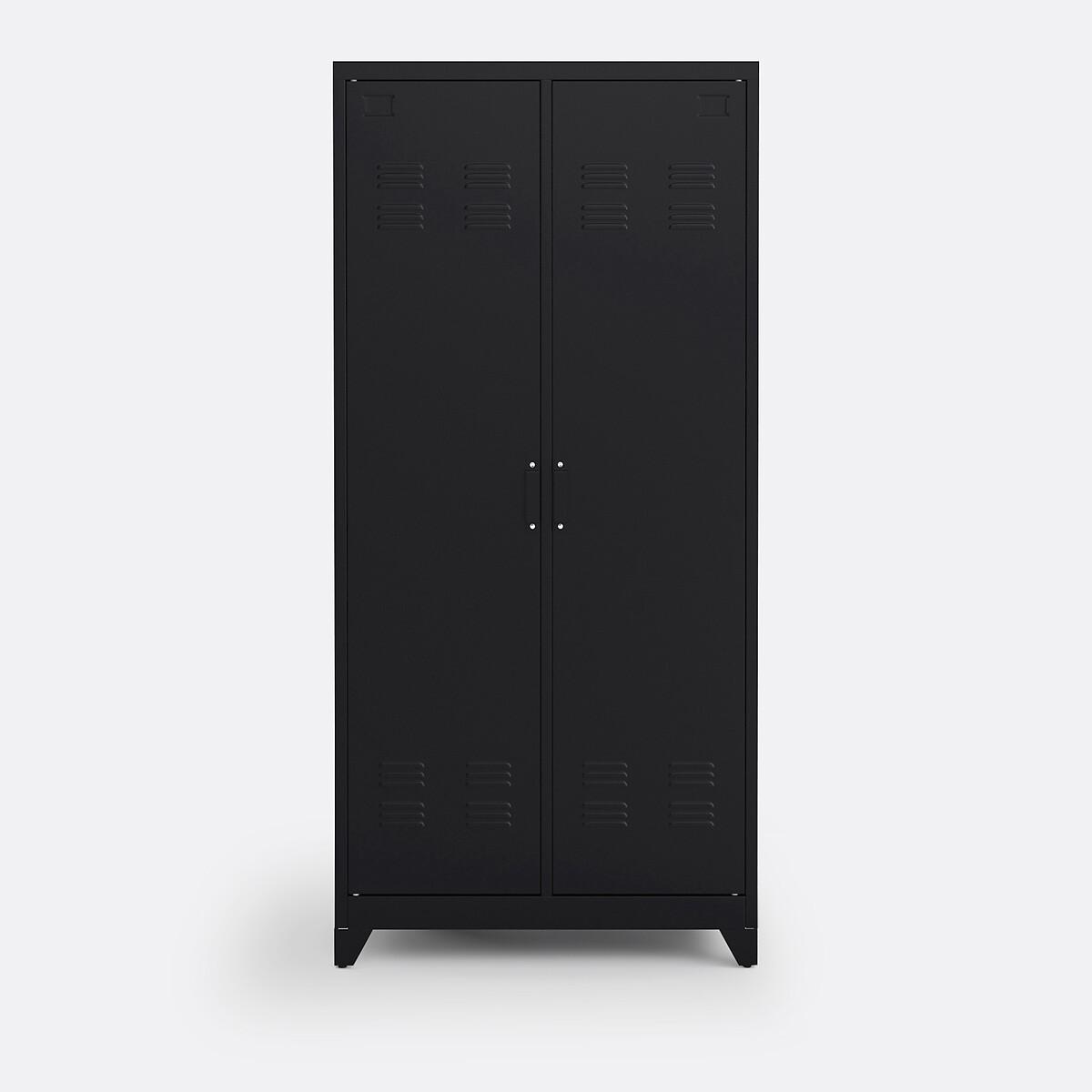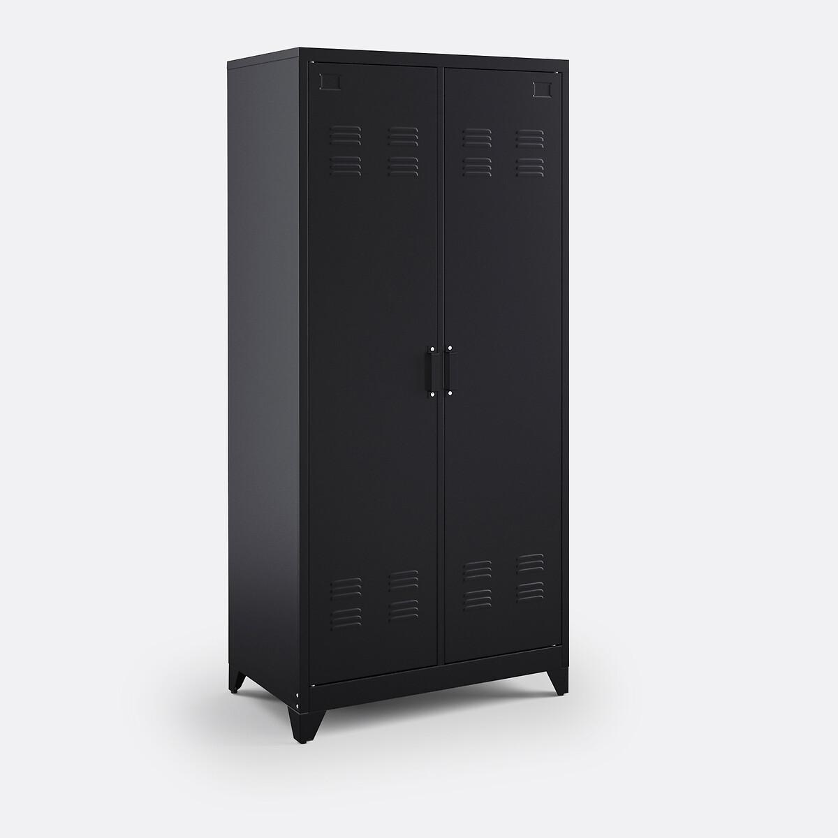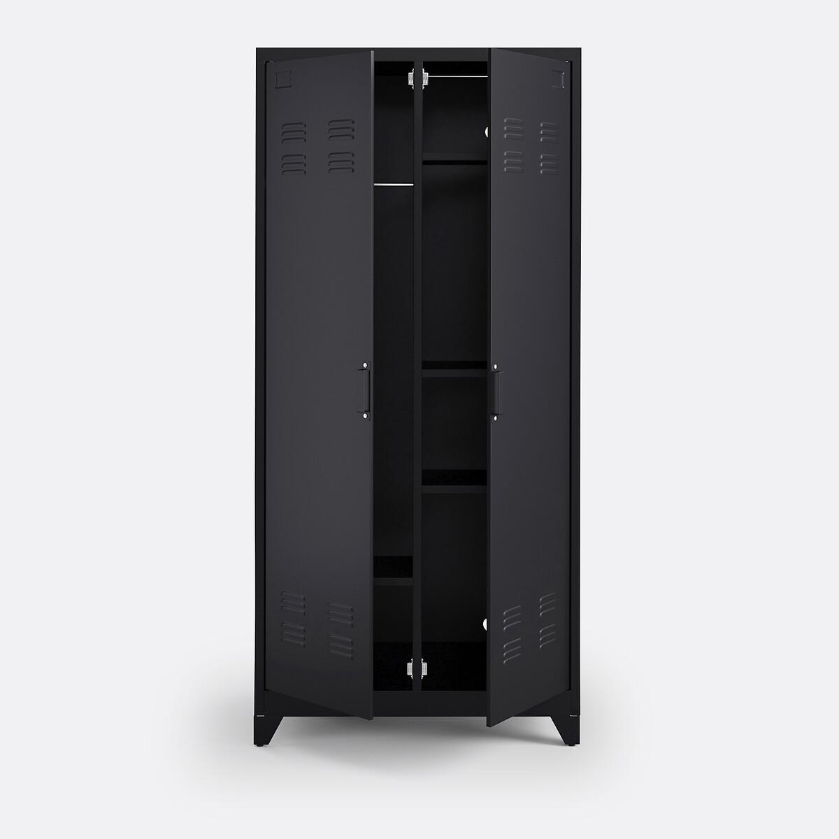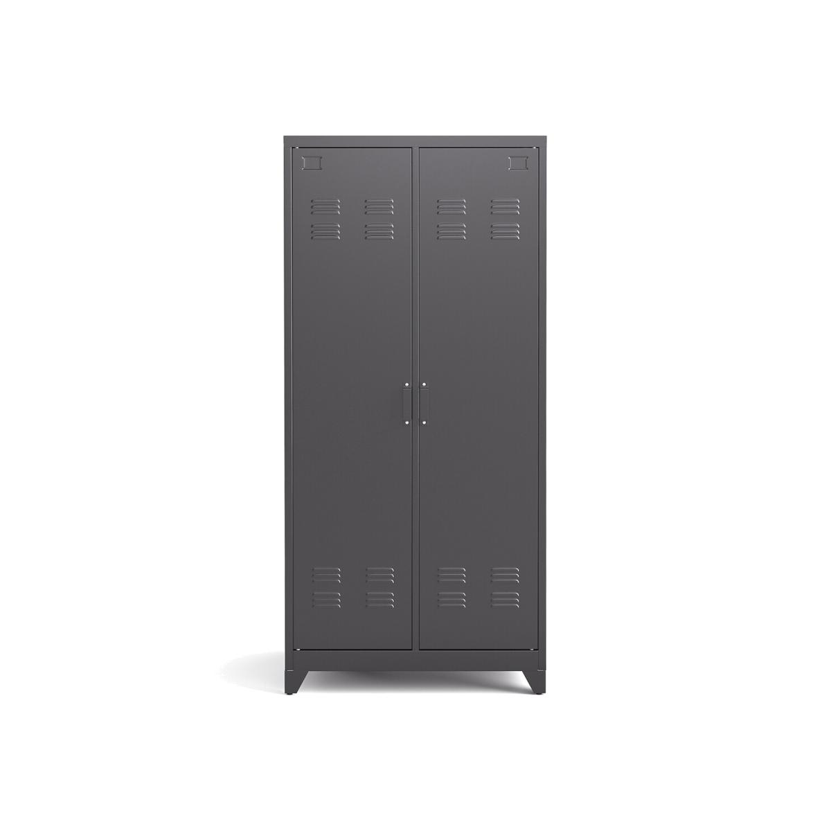 Bring industrial charm to your space with the Hiba 2-Door Metal Cabinet, perfect for organizing in hallways or bedrooms. This versatile unit includes a hanging rail, adjustable shelves, and a sturdy epoxy-finish steel frame. Its factory locker room style incorporates the look of the industrial trend, to bring a vintage touch to your decor. Storage: on the left is a shelf at the top and a hanging rail, on the right 3 shelves. Plus point: The shelves are adjustable in height, for personalised and optimal storage!Product Details • 2 doors • On left-hand side: 1 hanging rail and 1 adjustable removable shelf • On the right : 2 removable and adjustable shelves and one fixed shelf in the middle • Epoxy-finish steel metal structure, base and handles • Magnetic closure of the doors • Adjustable legs: 4 plastic pads adjustable in height. Dimensions • Width: 85cm • Height: 180cm • Depth: 50cm • Hanging space : L41 x H128 x D48cmDelivery:. This product is sold for self-assembly. It will be delivered to your door. ! Note! Please check that access points (doorways, stairways, lifts) are wide enough to accommodate your delivery. Dimensions and weight of parcel:2 parcels • L106 x H19 x D58cm. 15.5kg • L175 x H24 x D56cm. 40kg