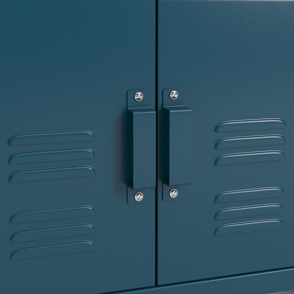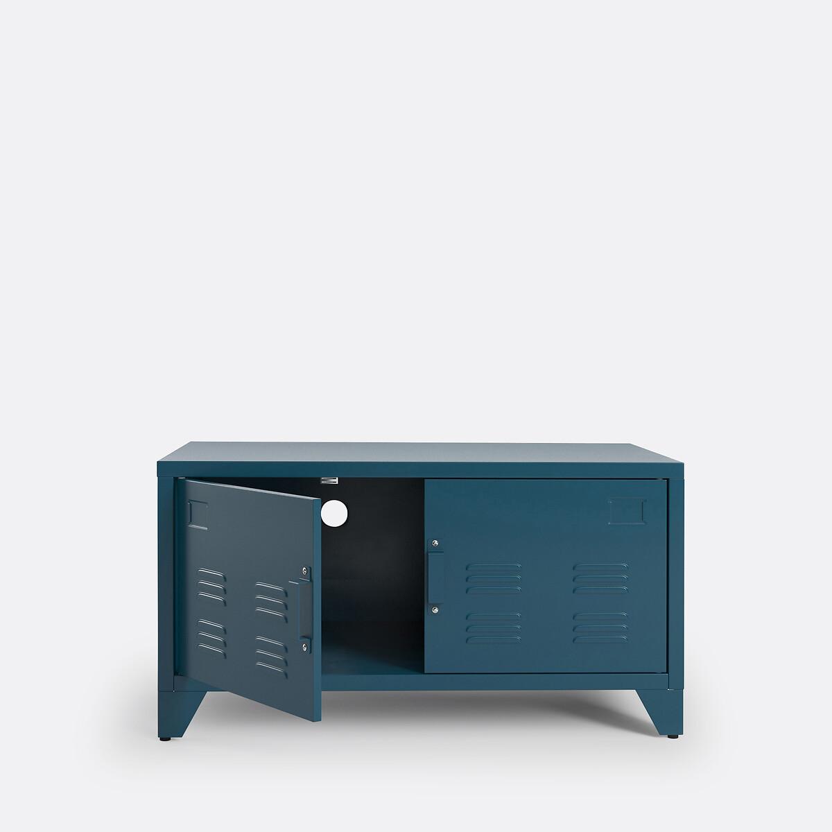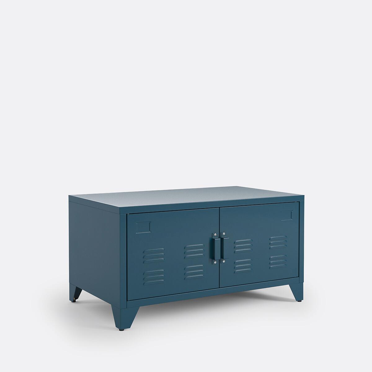 With its industrial design, the Hiba metal 2-door low cabinet brings a vintage touch to your decor. Perfect as an occasional piece of furniture, it will easily find its place in an entrance hall, a child's room or even in an office.. A more real product, without the feet, it fits perfectly in addition to the Hiba 2 door cabinet. Product Details • Made from steel with an epoxy finish • 2 doors with magnetic closure • Inside: 1 compartment • Adjustable legs: 4 plastic pads adjustable in heightDimensions. Overall • Length: 85cm • Depth: 50cm • Height: 45cm. Usable space • Height of legs: 8cm • Weight: 12kgDelivery:. Assembly required. Available for home delivery. Dimensions and weight of parcel1 parcel • L102 x H12.5 x D57cm. 14.65kg.