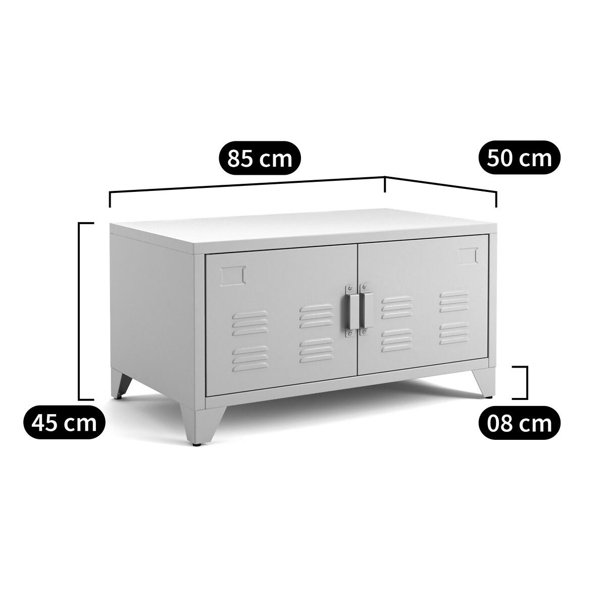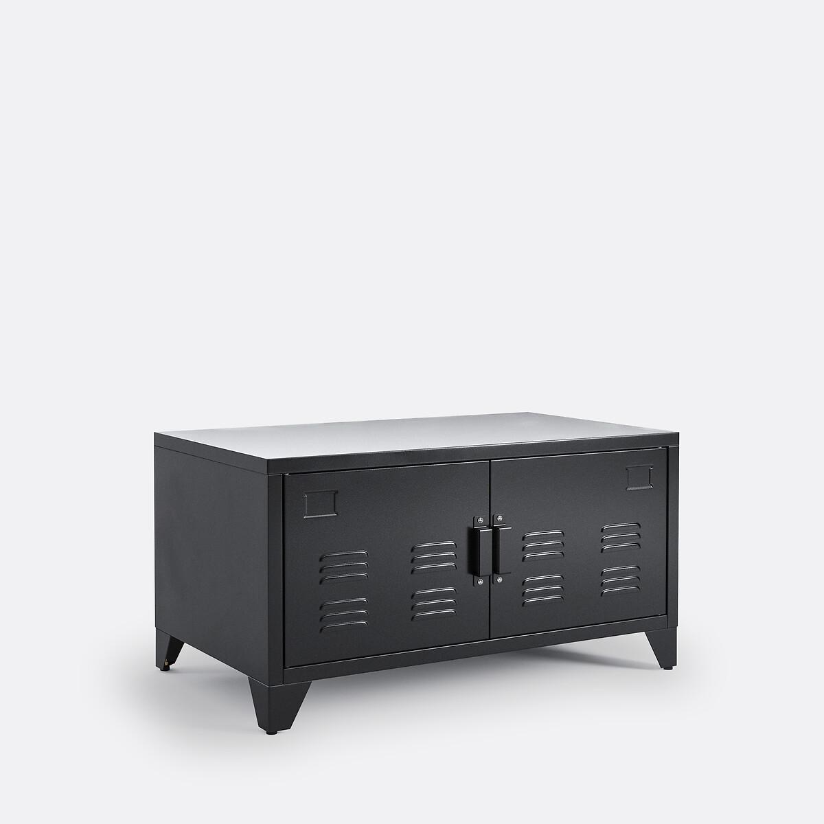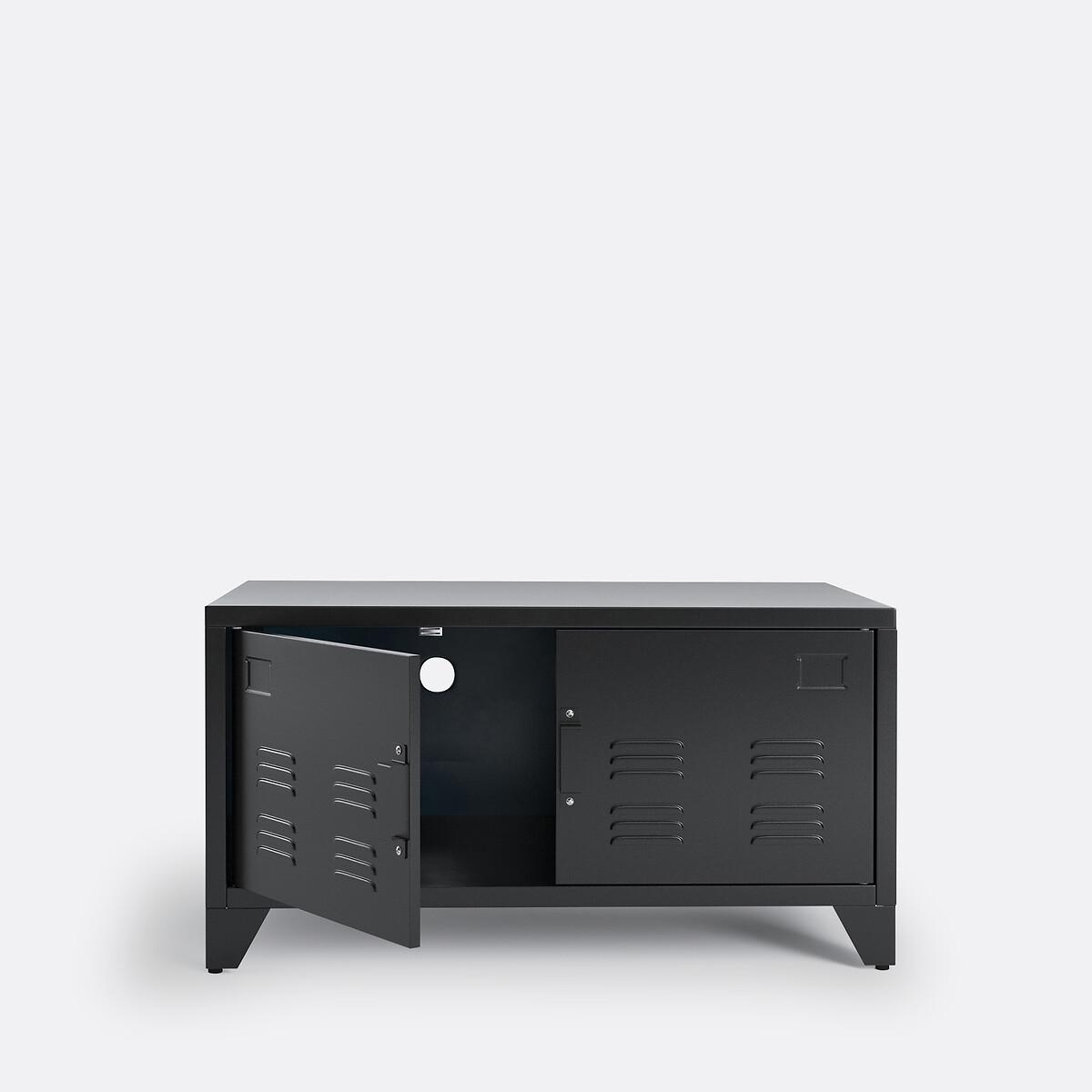 With its industrial design, the Hiba metal 2-door low cabinet brings a vintage touch to your decor. Perfect as an occasional piece of furniture, it will easily find its place in an entrance hall, a child's room or even in an office.. A more real product, without the feet, it fits perfectly in addition to the Hiba 2 door cabinet. Product Details • Made from steel with an epoxy finish • 2 doors with magnetic closure • Inside: 1 compartment • Adjustable legs: 4 plastic pads adjustable in heightDimensions. Overall • Length: 85cm • Depth: 50cm • Height: 45cm. Usable space • Height of legs: 8cm • Weight: 12kgDelivery:. Assembly required. Available for home delivery. Dimensions and weight of parcel1 parcel • L102 x H12.5 x D57cm. 14.65kg.