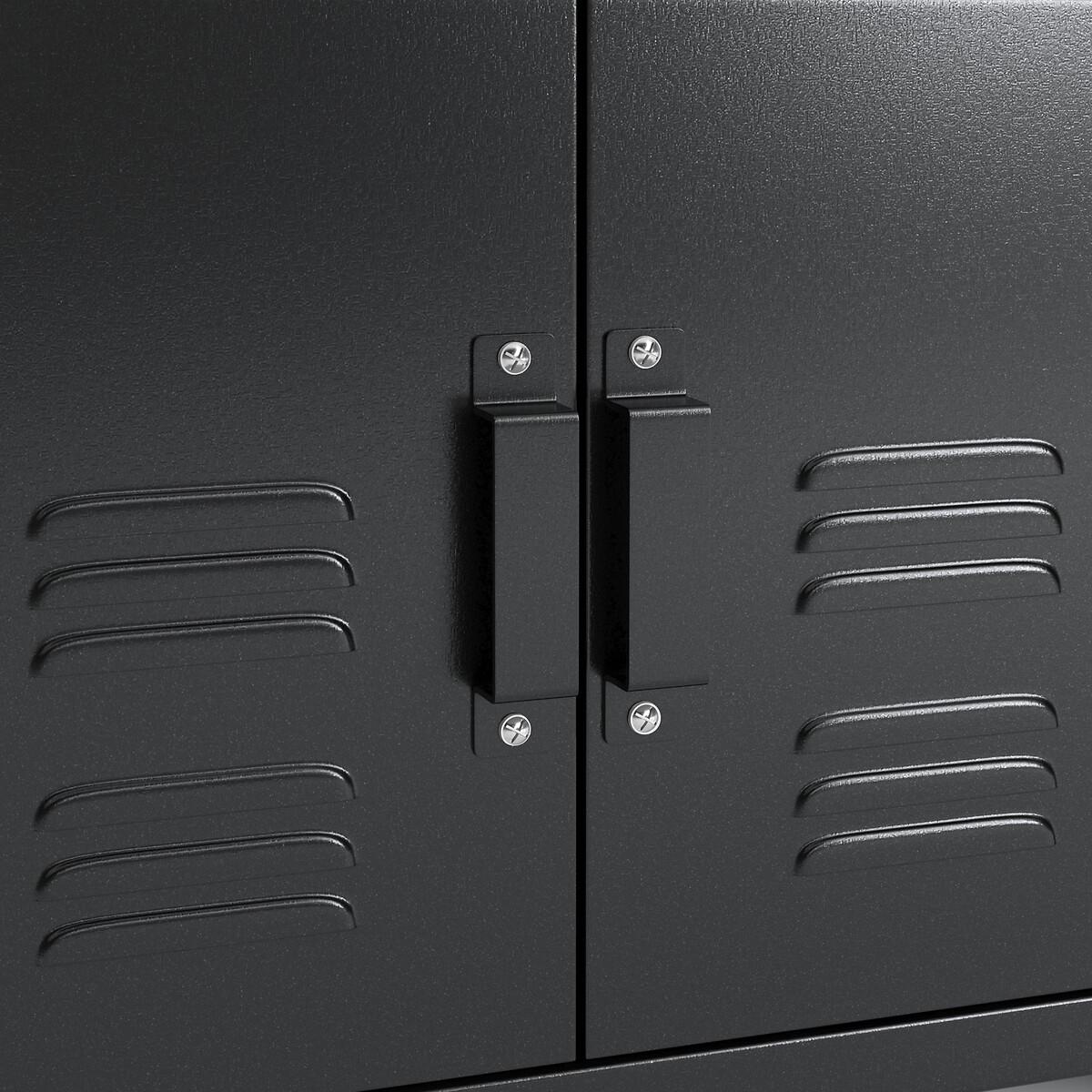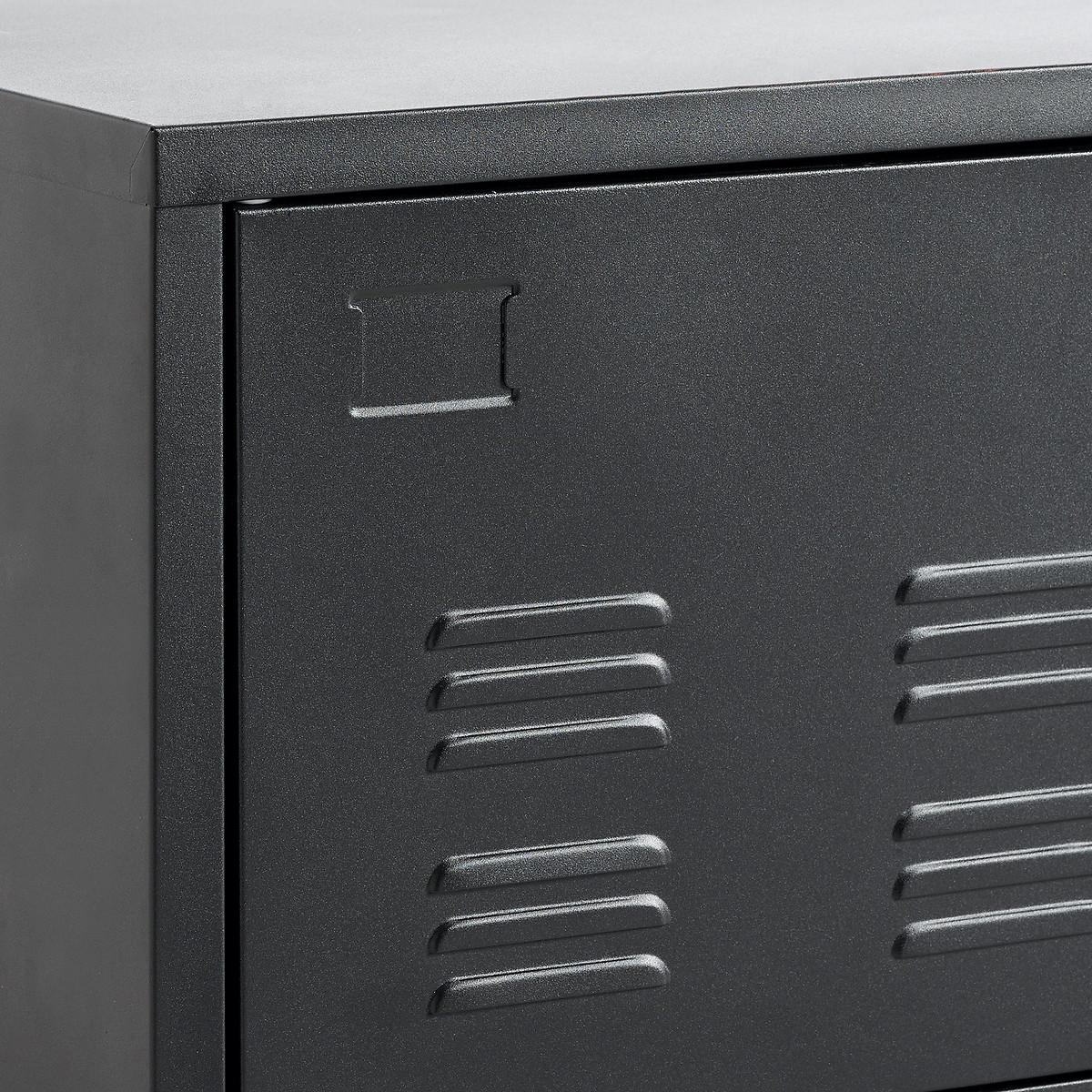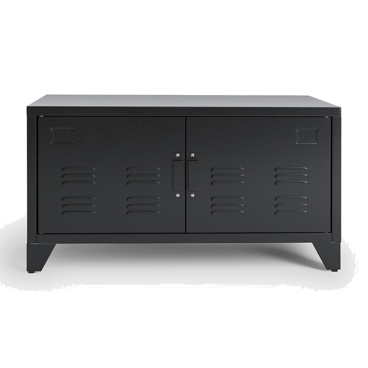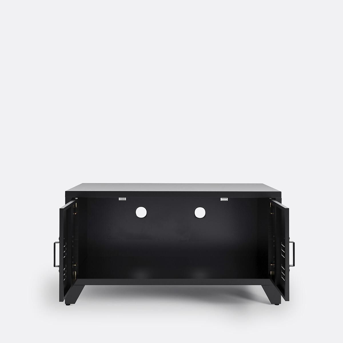 With its industrial design, the Hiba metal 2-door low cabinet brings a vintage touch to your decor. Perfect as an occasional piece of furniture, it will easily find its place in an entrance hall, a child's room or even in an office.. A more real product, without the feet, it fits perfectly in addition to the Hiba 2 door cabinet. Product Details • Made from steel with an epoxy finish • 2 doors with magnetic closure • Inside: 1 compartment • Adjustable legs: 4 plastic pads adjustable in heightDimensions. Overall • Length: 85cm • Depth: 50cm • Height: 45cm. Usable space • Height of legs: 8cm • Weight: 12kgDelivery:. Assembly required. Available for home delivery. Dimensions and weight of parcel1 parcel • L102 x H12.5 x D57cm. 14.65kg.