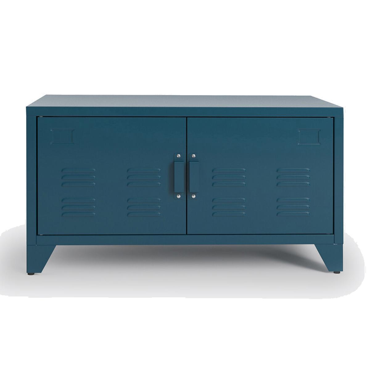 With its industrial design, the Hiba metal 2-door low cabinet brings a vintage touch to your decor. Perfect as an occasional piece of furniture, it will easily find its place in an entrance hall, a child's room or even in an office.. A more real product, without the feet, it fits perfectly in addition to the Hiba 2 door cabinet. Product Details • Made from steel with an epoxy finish • 2 doors with magnetic closure • Inside: 1 compartment • Adjustable legs: 4 plastic pads adjustable in heightDimensions. Overall • Length: 85cm • Depth: 50cm • Height: 45cm. Usable space • Height of legs: 8cm • Weight: 12kgDelivery:. Assembly required. Available for home delivery. Dimensions and weight of parcel1 parcel • L102 x H12.5 x D57cm. 14.65kg.