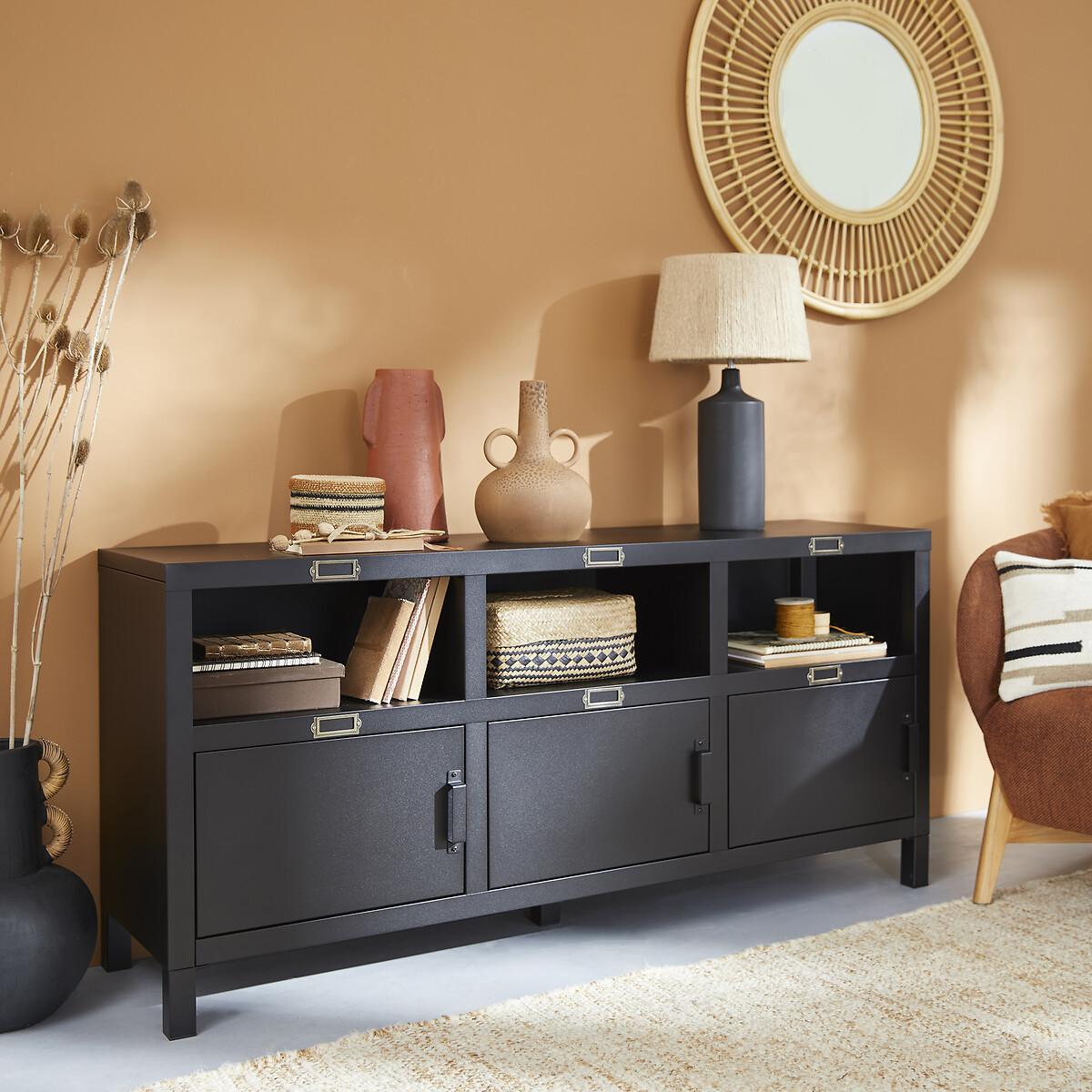 I love this three-door sideboard for its versatile, clean-lined design that works well in a range of interiors, from modern to industrial to scandi. It’s practical for storage, with plenty of space behind the doors and open shelving for displaying everyday items or decorative pieces. I recommend styling it with a mix of functional accessories like baskets or trays on top, paired with a few curated decorative objects or plants to add personality. It’s particularly useful in living rooms, dining areas, or even bedrooms where extra storage is needed without compromising on style. Keep the colour palette in mind-this dark hue makes a statement but also pairs beautifully with lighter neutrals for contrast or with warm wood tones for a cosy feel.
