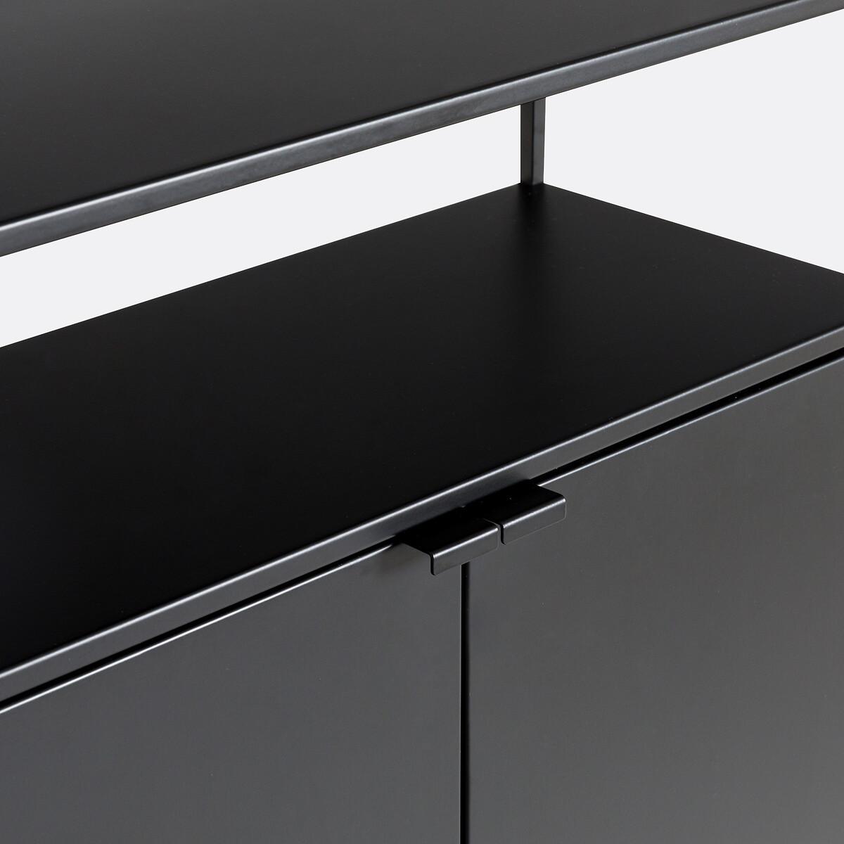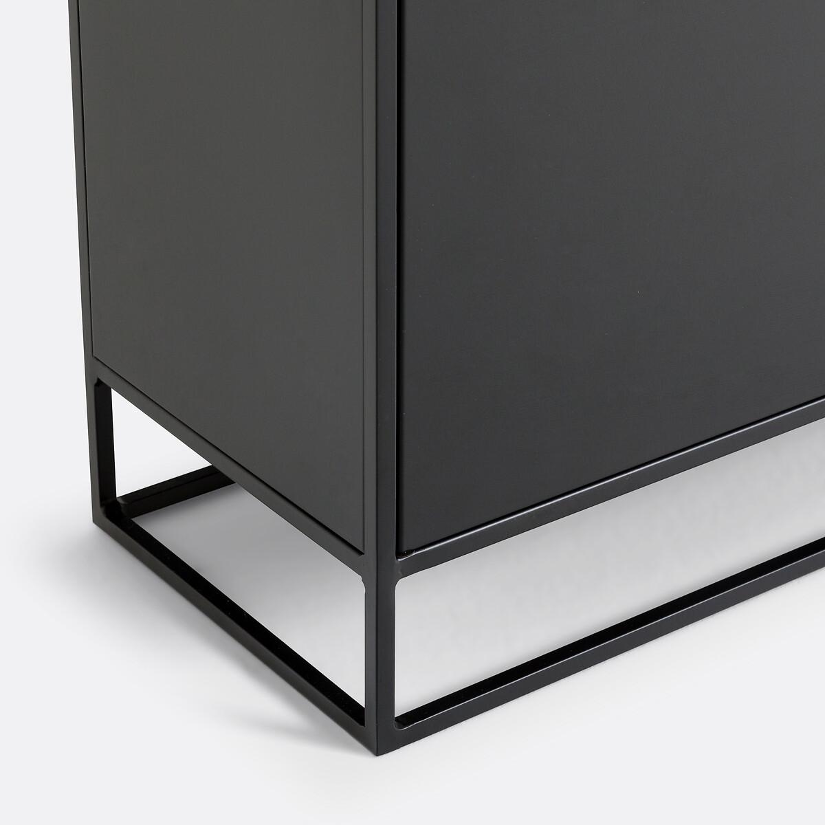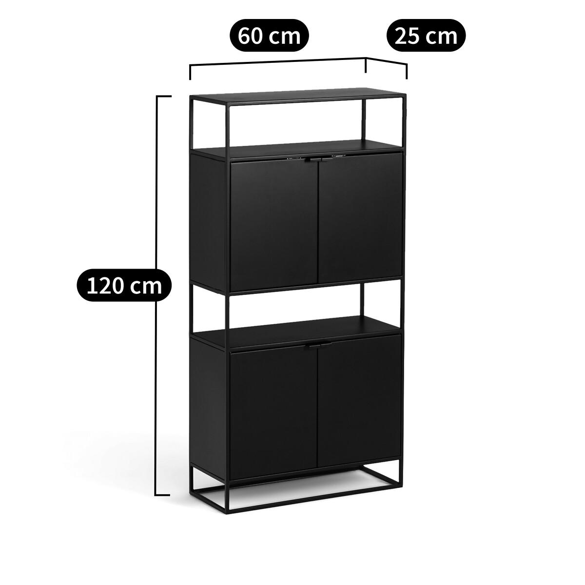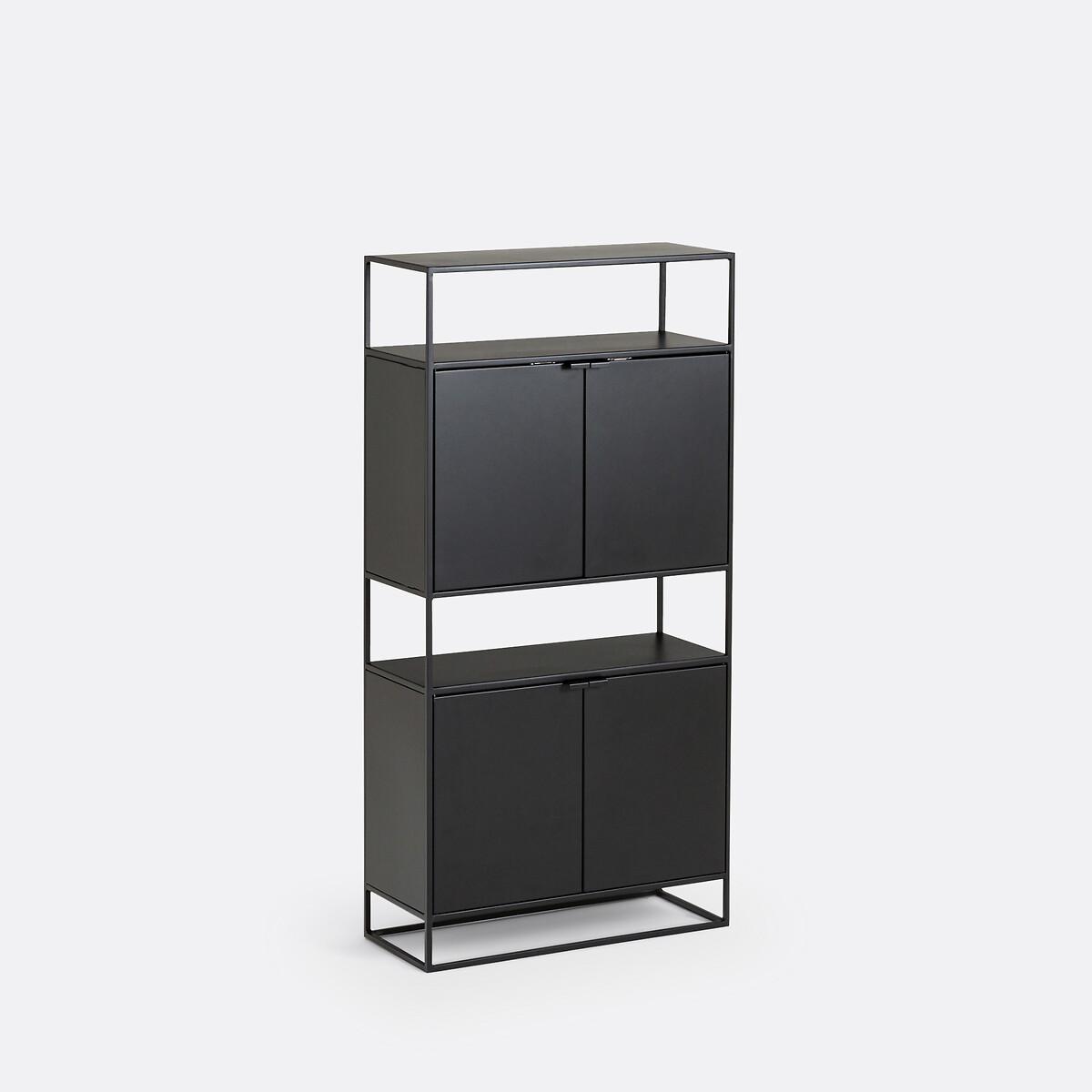 Optimise your entrance with the Hiba industrial-style cabinet. This piece of furniture will be perfect in an entrance to store bags and accessories.. Its shallow depth saves space in small spaces. Designed by La Redoute Interiors. Product Details • 4-door wardrobe with 1 shelf in each height-adjustable box + 2 open storage spaces + 1 shelf with the upper shelf • Structure in square shaped steel metal tube, thickness 1cm, black tinted epoxy finish, matte effect • Magnetic closure of the doorsDimensions. Overall • Width: 60cm • Height: 120cm • Depth: 25cm. Usable space • Height of 2 open compartments: 15cm • Base height: 8cm • Dimensions of the 4 internal storage spaces: L58 x D24 x H18cm (adjustable shelves on 3 height levels) • Weight: 27kgDelivery:. Sold pre-assembled. Dimensions and weight of parcel1 parcel • L126 x H65.5 x D31cm. 31.26kg